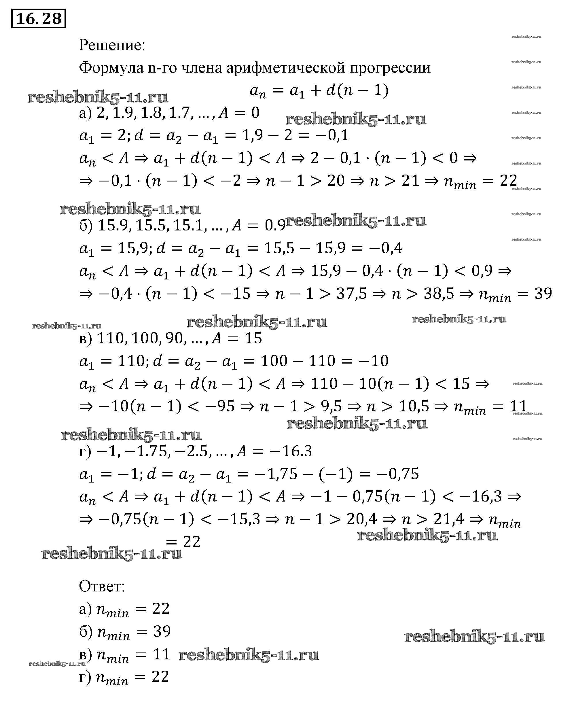 Готовая домашняя работа с ответами по Алгебре за 9 класс Мордкович, Александрова, Мишустина, Тульчинская, Семёнов Задачник Часть 2 Мнемозина 2010 ФГОС - § 16. Арифметическая прогрессия 28