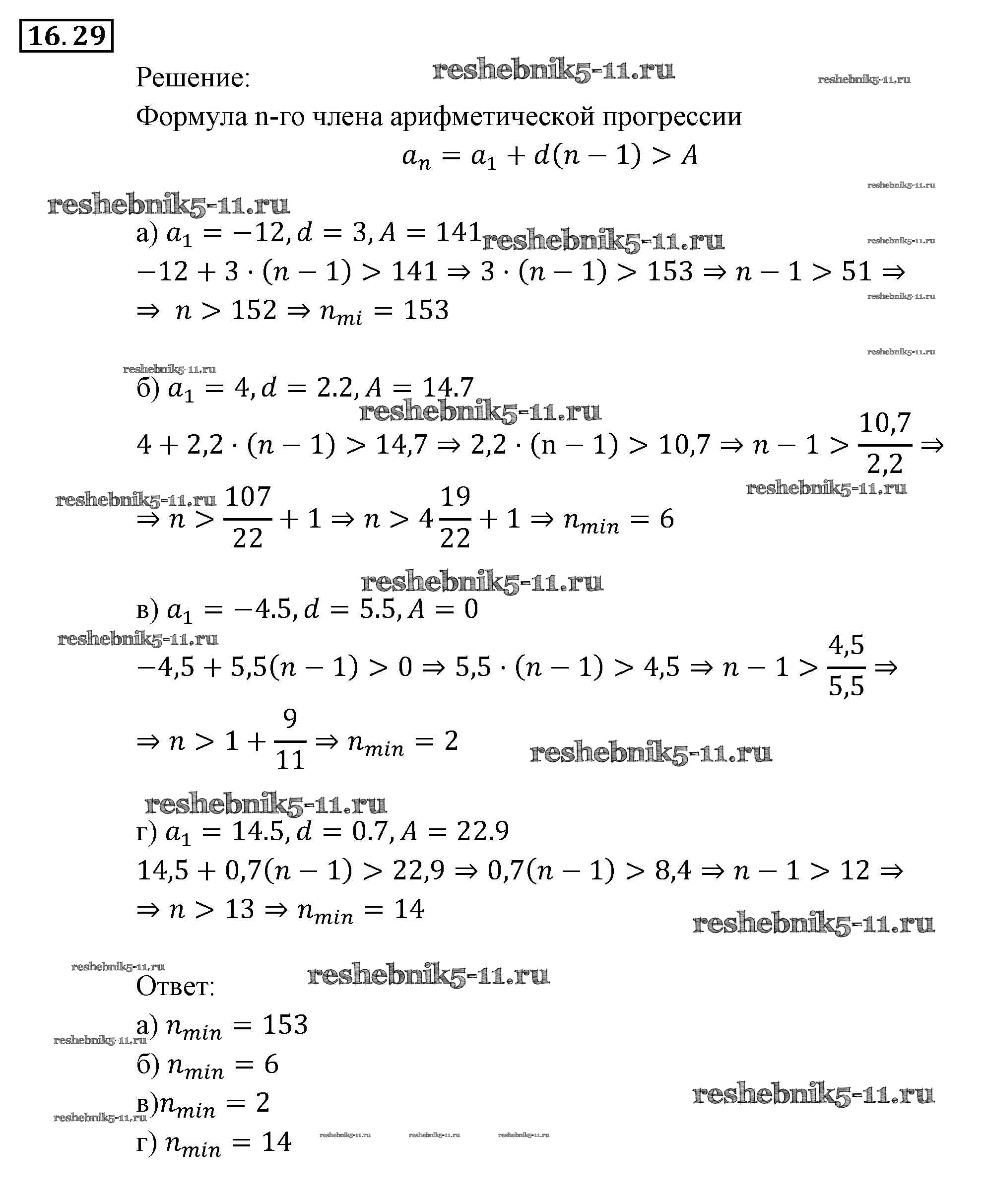 Готовая домашняя работа с ответами по Алгебре за 9 класс Мордкович, Александрова, Мишустина, Тульчинская, Семёнов Задачник Часть 2 Мнемозина 2010 ФГОС - § 16. Арифметическая прогрессия 29