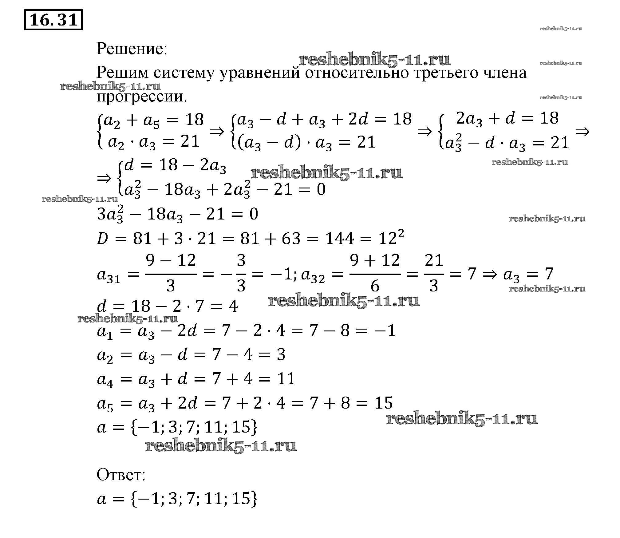 Готовая домашняя работа с ответами по Алгебре за 9 класс Мордкович, Александрова, Мишустина, Тульчинская, Семёнов Задачник Часть 2 Мнемозина 2010 ФГОС - § 16. Арифметическая прогрессия 31