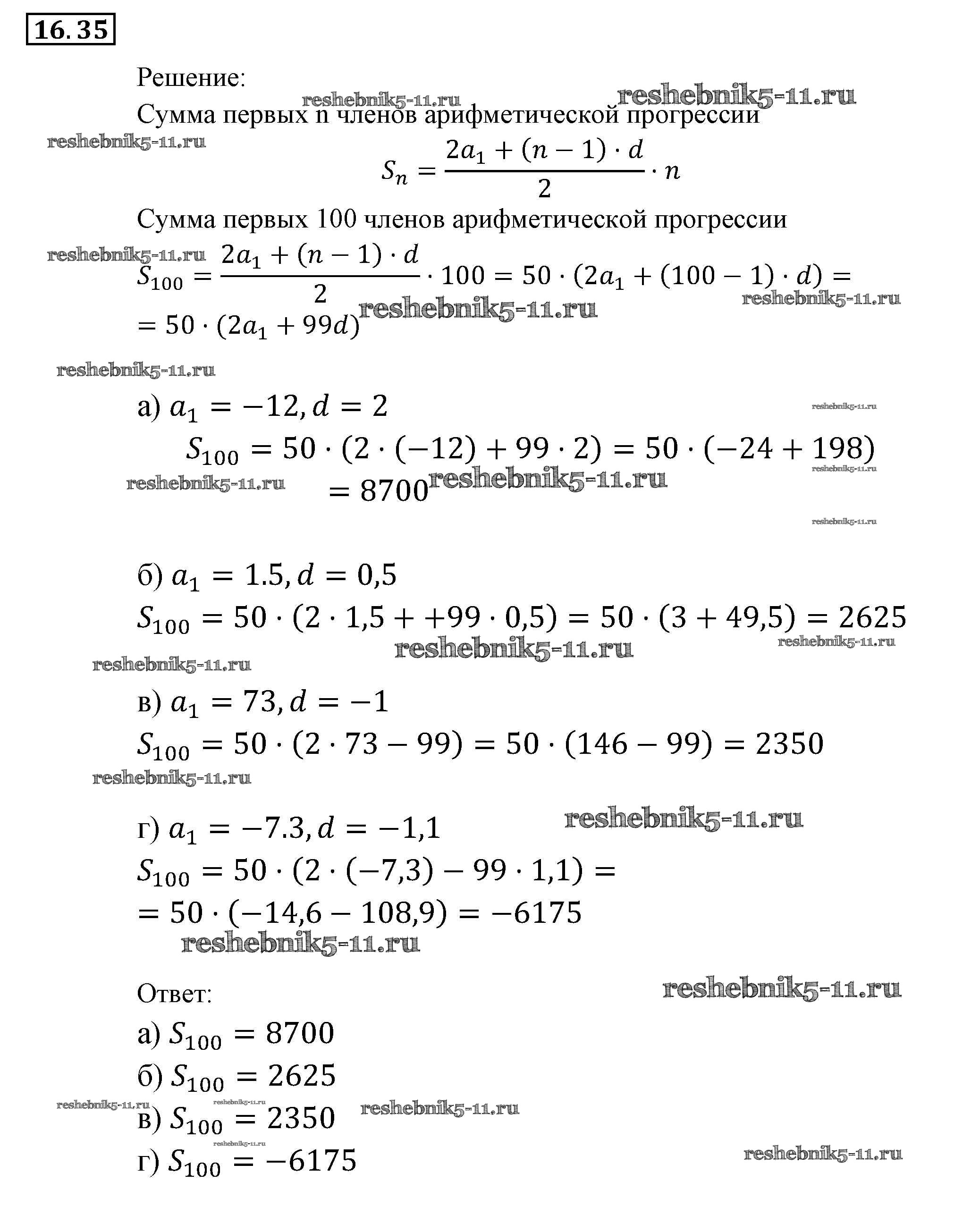 Готовая домашняя работа с ответами по Алгебре за 9 класс Мордкович, Александрова, Мишустина, Тульчинская, Семёнов Задачник Часть 2 Мнемозина 2010 ФГОС - § 16. Арифметическая прогрессия 35