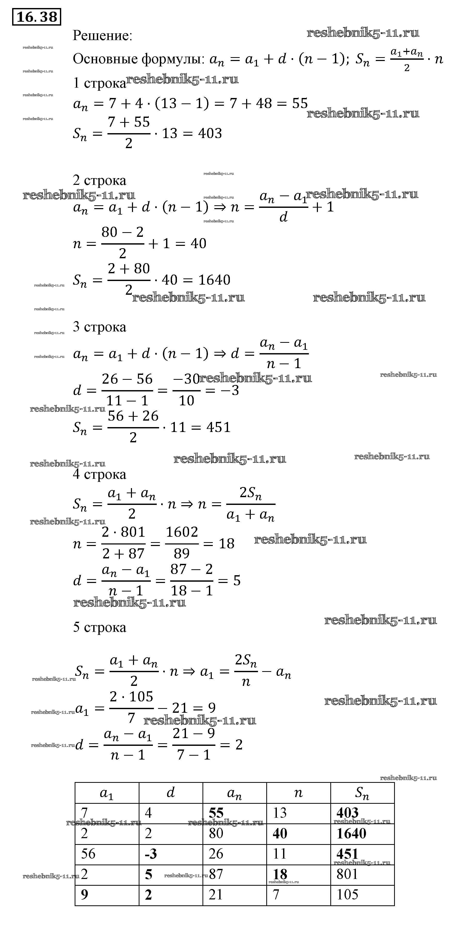 Готовая домашняя работа с ответами по Алгебре за 9 класс Мордкович, Александрова, Мишустина, Тульчинская, Семёнов Задачник Часть 2 Мнемозина 2010 ФГОС - § 16. Арифметическая прогрессия 38