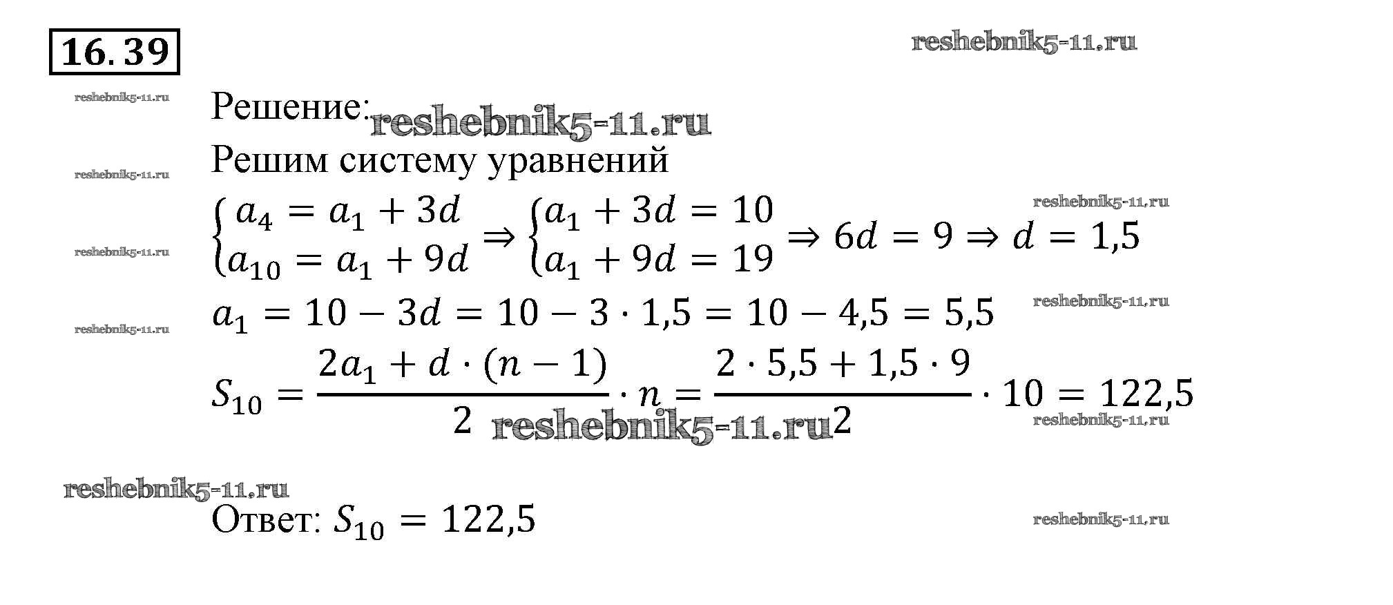 Готовая домашняя работа с ответами по Алгебре за 9 класс Мордкович, Александрова, Мишустина, Тульчинская, Семёнов Задачник Часть 2 Мнемозина 2010 ФГОС - § 16. Арифметическая прогрессия 39