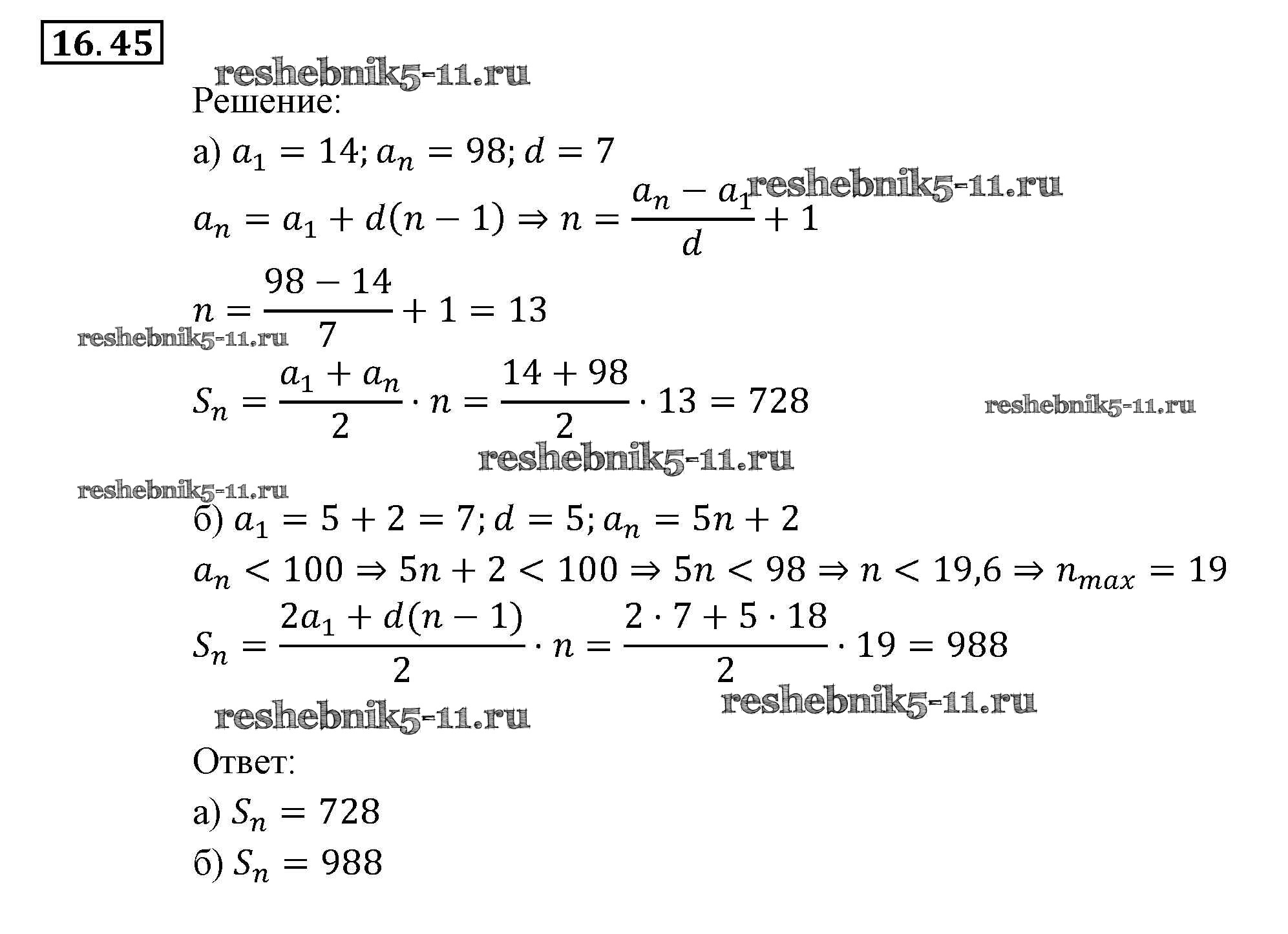 Готовая домашняя работа с ответами по Алгебре за 9 класс Мордкович, Александрова, Мишустина, Тульчинская, Семёнов Задачник Часть 2 Мнемозина 2010 ФГОС - § 16. Арифметическая прогрессия 45