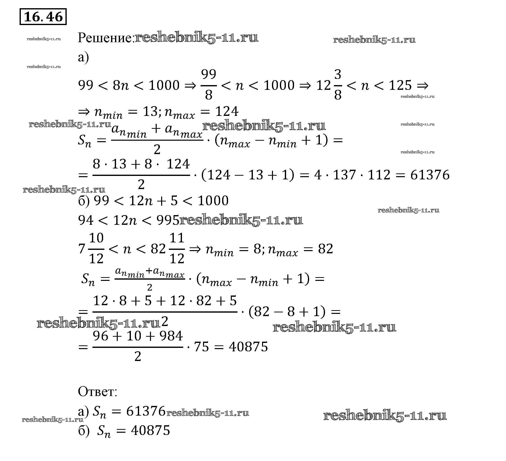 Готовая домашняя работа с ответами по Алгебре за 9 класс Мордкович, Александрова, Мишустина, Тульчинская, Семёнов Задачник Часть 2 Мнемозина 2010 ФГОС - § 16. Арифметическая прогрессия 46