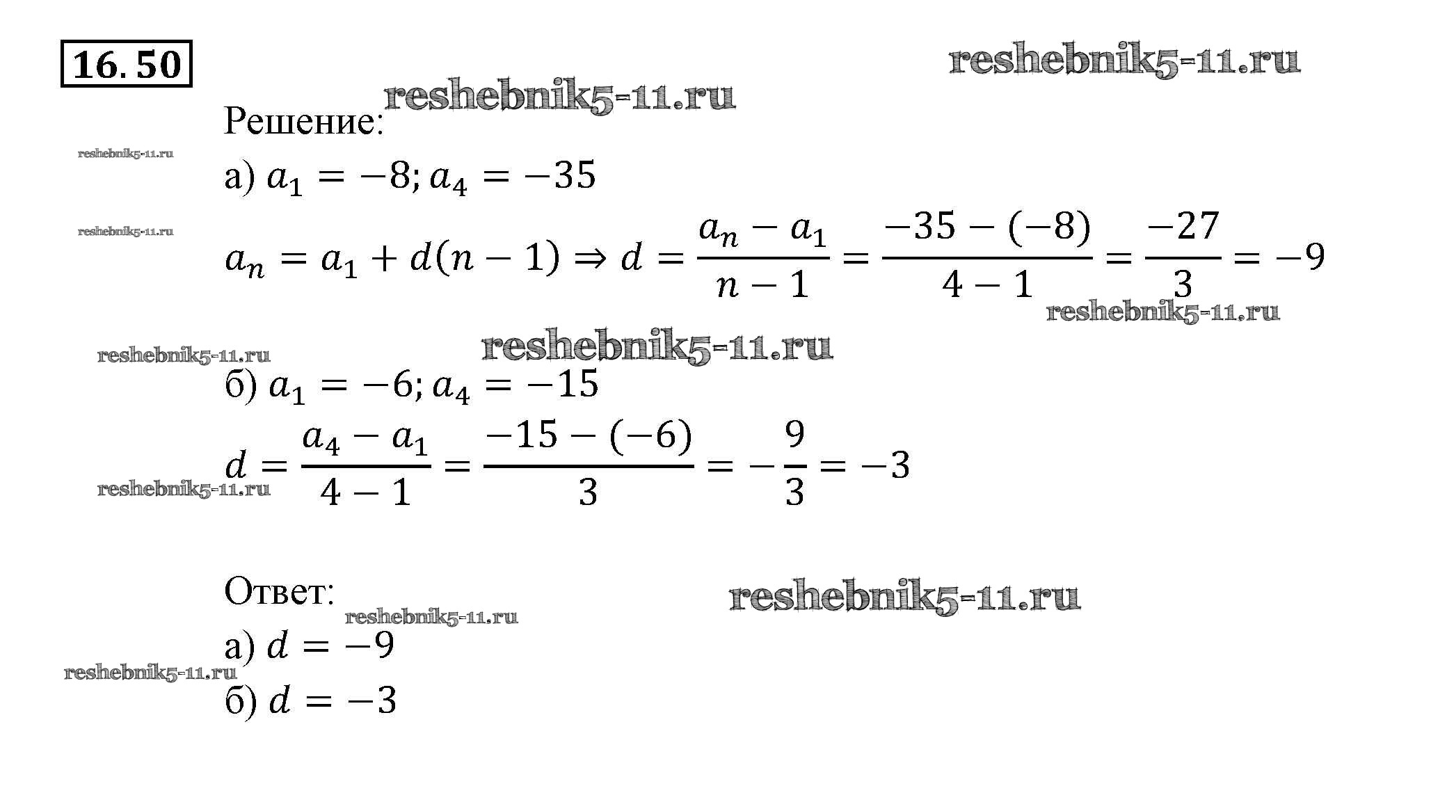 Готовая домашняя работа с ответами по Алгебре за 9 класс Мордкович, Александрова, Мишустина, Тульчинская, Семёнов Задачник Часть 2 Мнемозина 2010 ФГОС - § 16. Арифметическая прогрессия 50