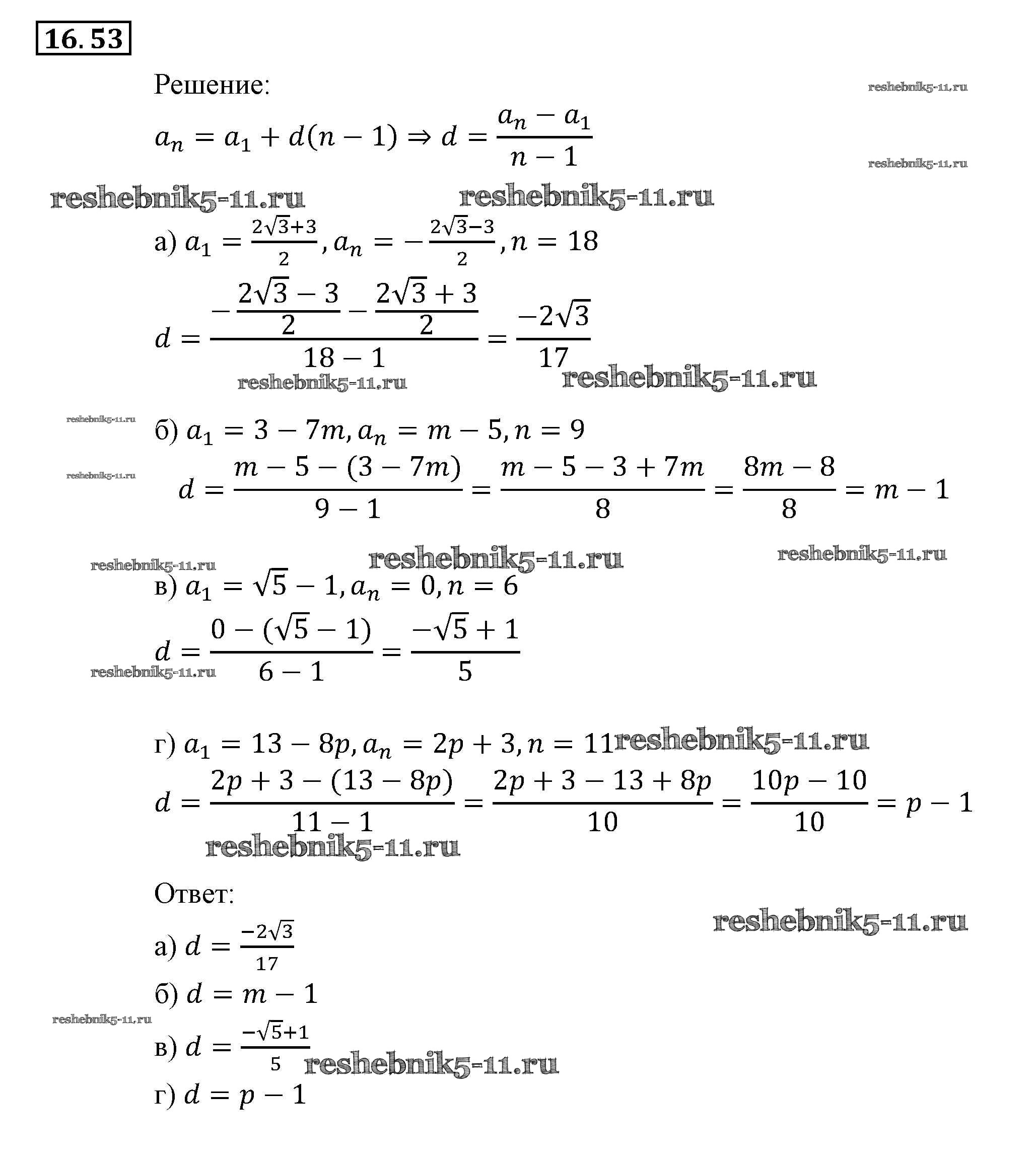 Готовая домашняя работа с ответами по Алгебре за 9 класс Мордкович, Александрова, Мишустина, Тульчинская, Семёнов Задачник Часть 2 Мнемозина 2010 ФГОС - § 16. Арифметическая прогрессия 53