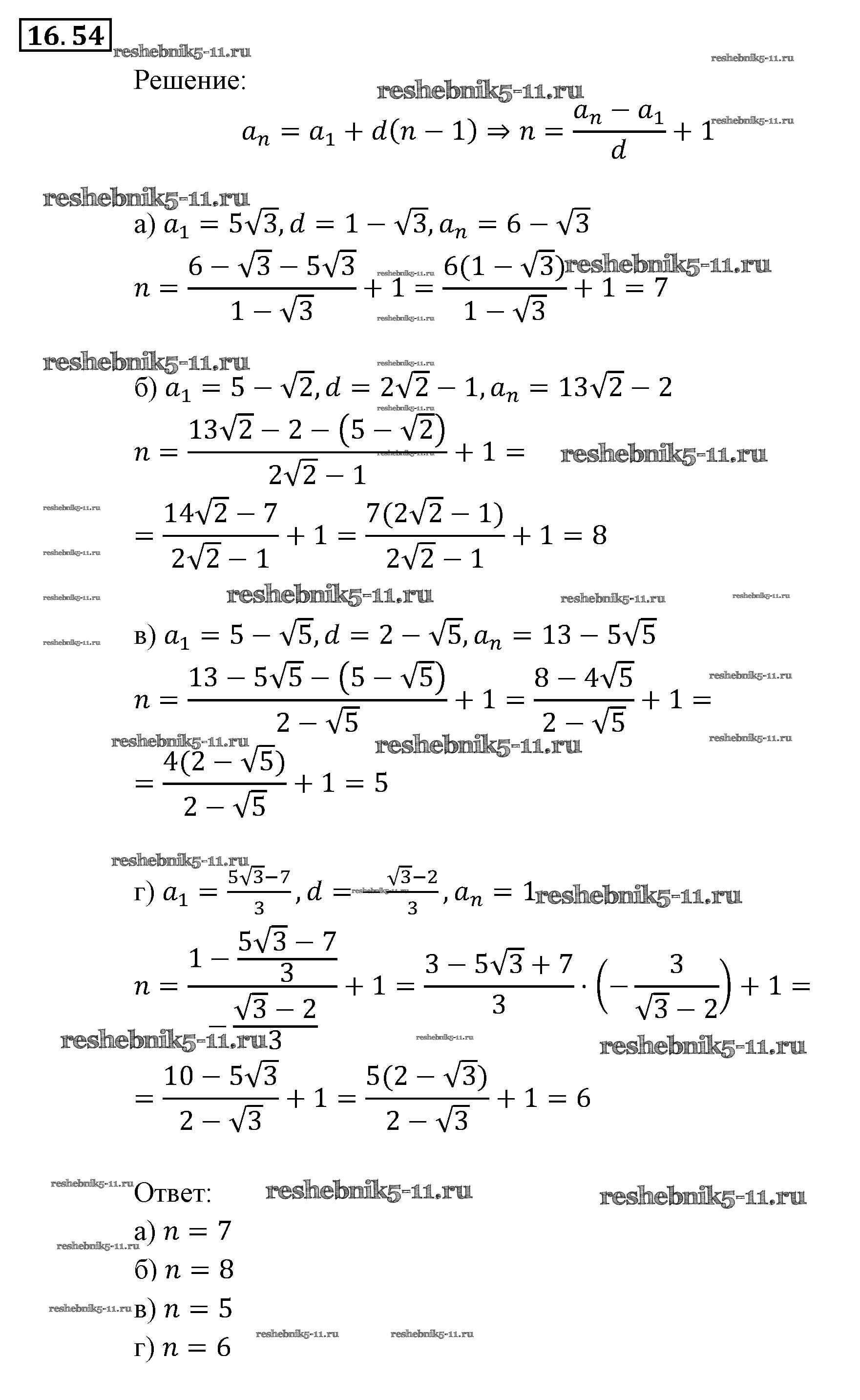 Готовая домашняя работа с ответами по Алгебре за 9 класс Мордкович, Александрова, Мишустина, Тульчинская, Семёнов Задачник Часть 2 Мнемозина 2010 ФГОС - § 16. Арифметическая прогрессия 54
