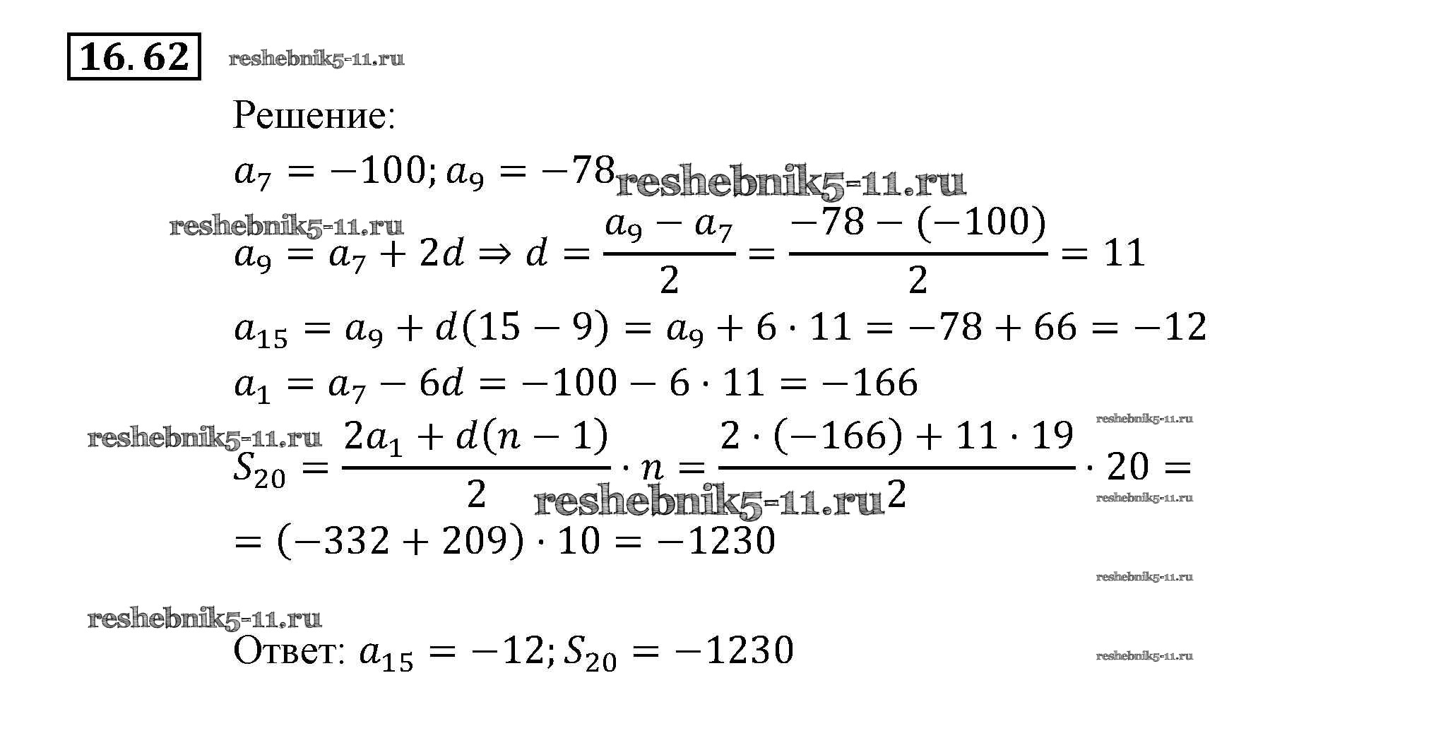 Готовая домашняя работа с ответами по Алгебре за 9 класс Мордкович, Александрова, Мишустина, Тульчинская, Семёнов Задачник Часть 2 Мнемозина 2010 ФГОС - § 16. Арифметическая прогрессия 62