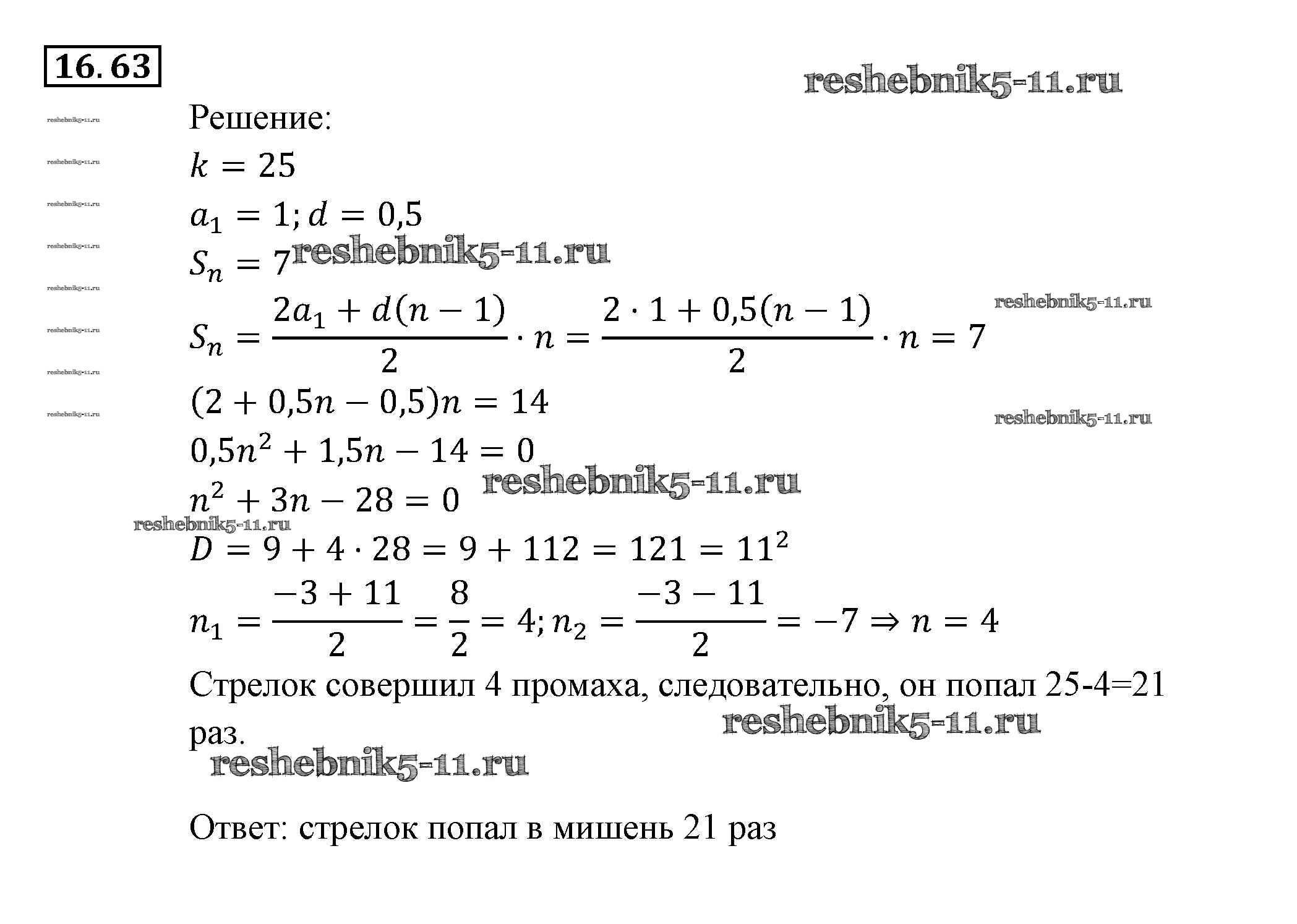 Готовая домашняя работа с ответами по Алгебре за 9 класс Мордкович, Александрова, Мишустина, Тульчинская, Семёнов Задачник Часть 2 Мнемозина 2010 ФГОС - § 16. Арифметическая прогрессия 63