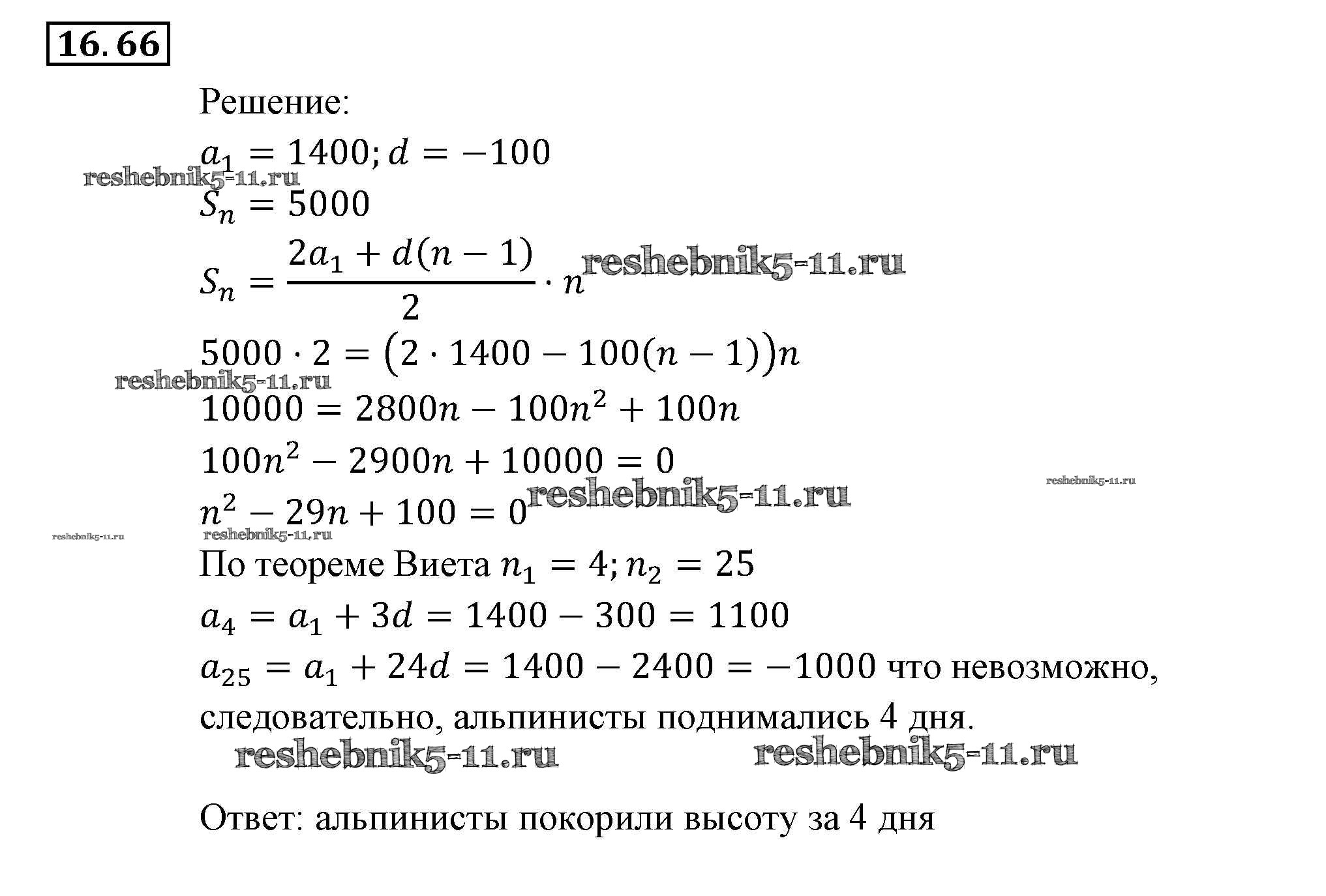 Готовая домашняя работа с ответами по Алгебре за 9 класс Мордкович, Александрова, Мишустина, Тульчинская, Семёнов Задачник Часть 2 Мнемозина 2010 ФГОС - § 16. Арифметическая прогрессия 66