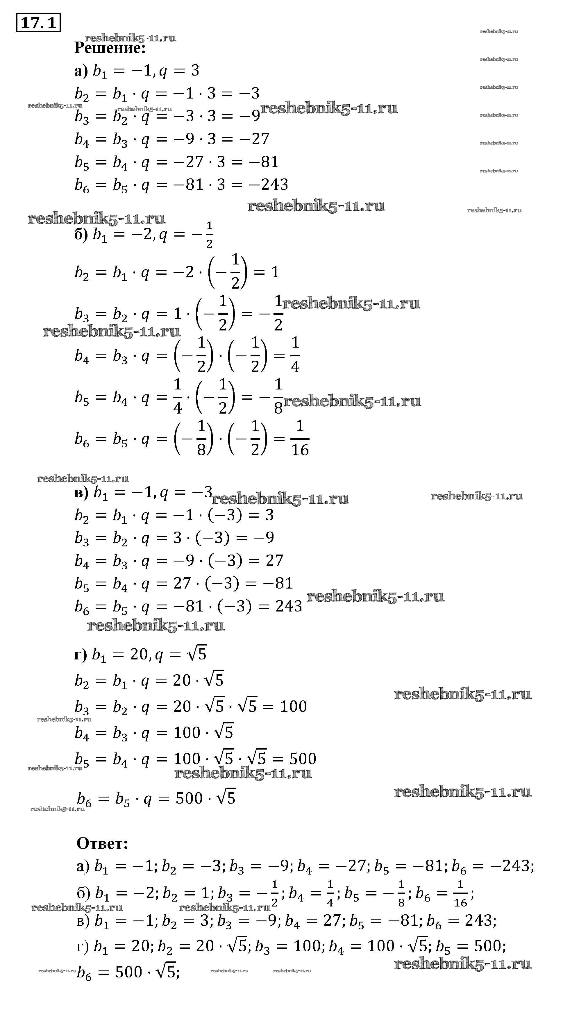 Готовая домашняя работа с ответами по Алгебре за 9 класс Мордкович, Александрова, Мишустина, Тульчинская, Семёнов Задачник Часть 2 Мнемозина 2010 ФГОС - § 17. Геометрическая прогрессия 1