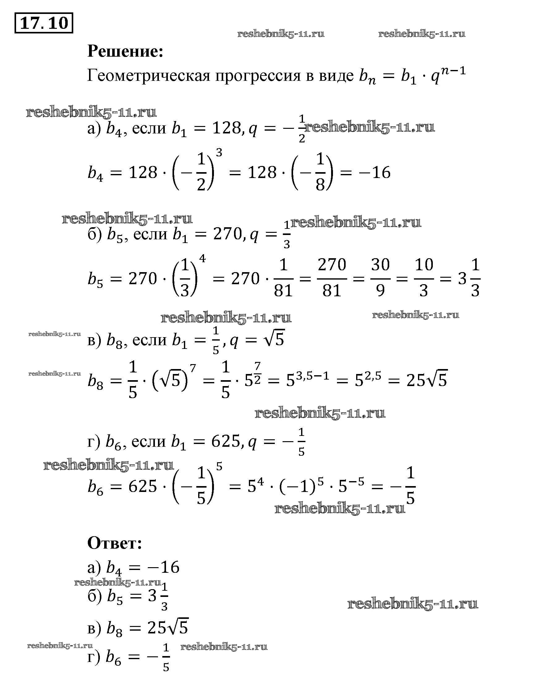 Готовая домашняя работа с ответами по Алгебре за 9 класс Мордкович, Александрова, Мишустина, Тульчинская, Семёнов Задачник Часть 2 Мнемозина 2010 ФГОС - § 17. Геометрическая прогрессия 10