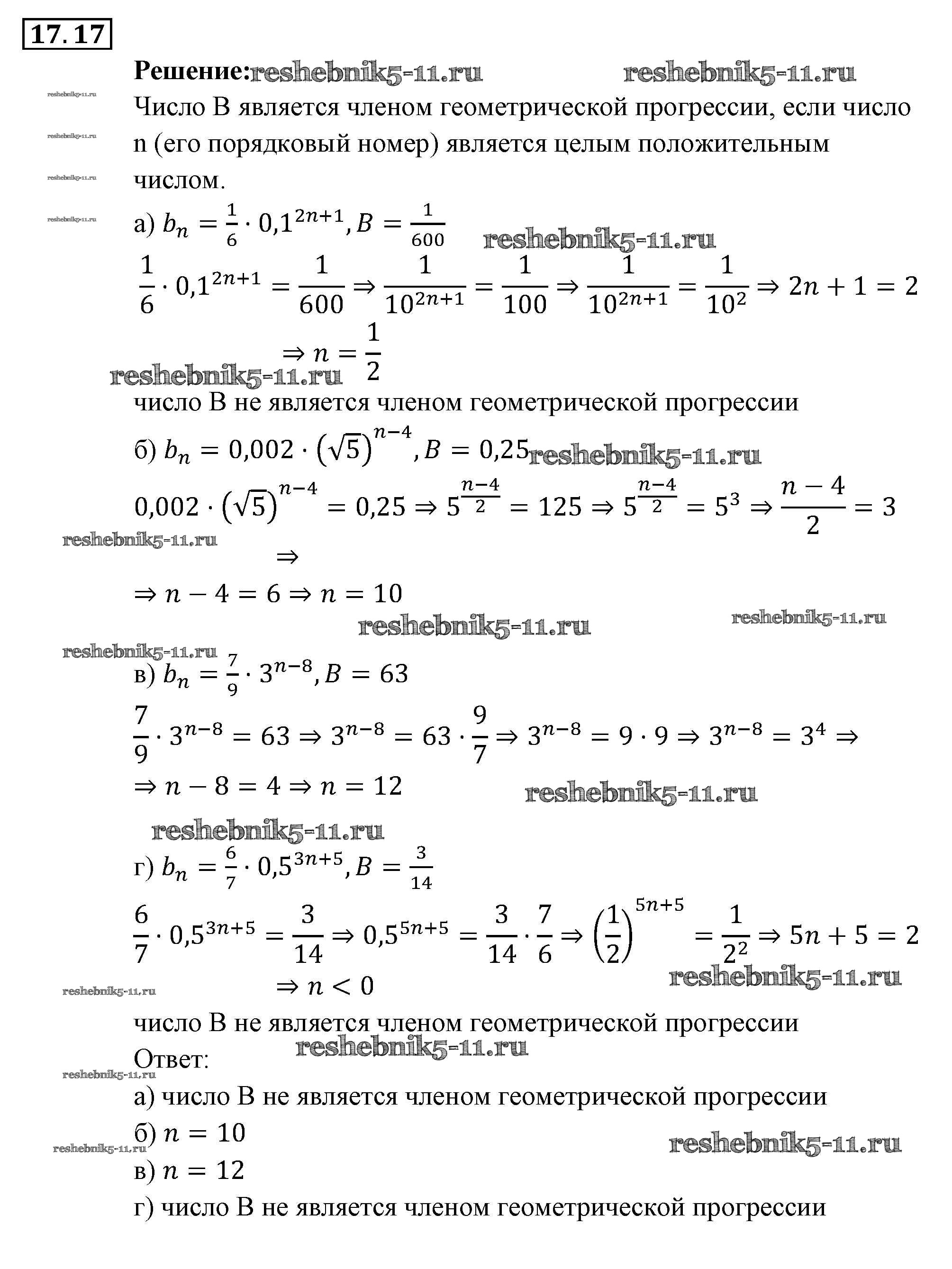 Готовая домашняя работа с ответами по Алгебре за 9 класс Мордкович, Александрова, Мишустина, Тульчинская, Семёнов Задачник Часть 2 Мнемозина 2010 ФГОС - § 17. Геометрическая прогрессия 17
