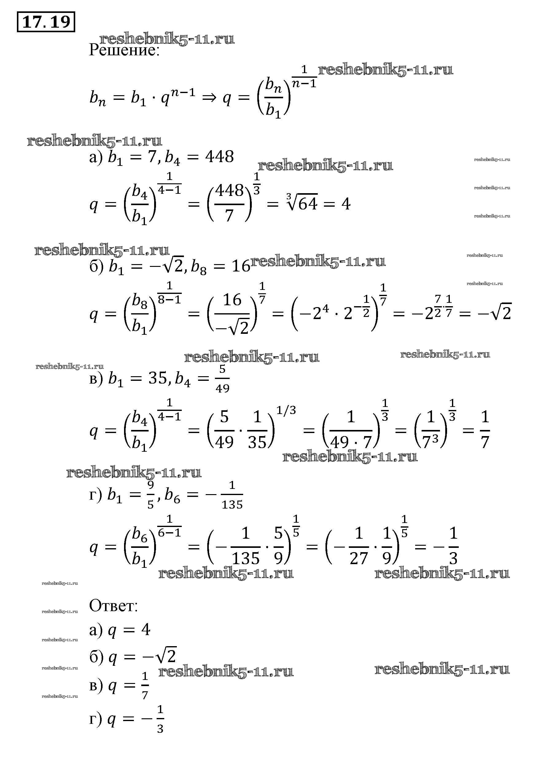 Готовая домашняя работа с ответами по Алгебре за 9 класс Мордкович, Александрова, Мишустина, Тульчинская, Семёнов Задачник Часть 2 Мнемозина 2010 ФГОС - § 17. Геометрическая прогрессия 19