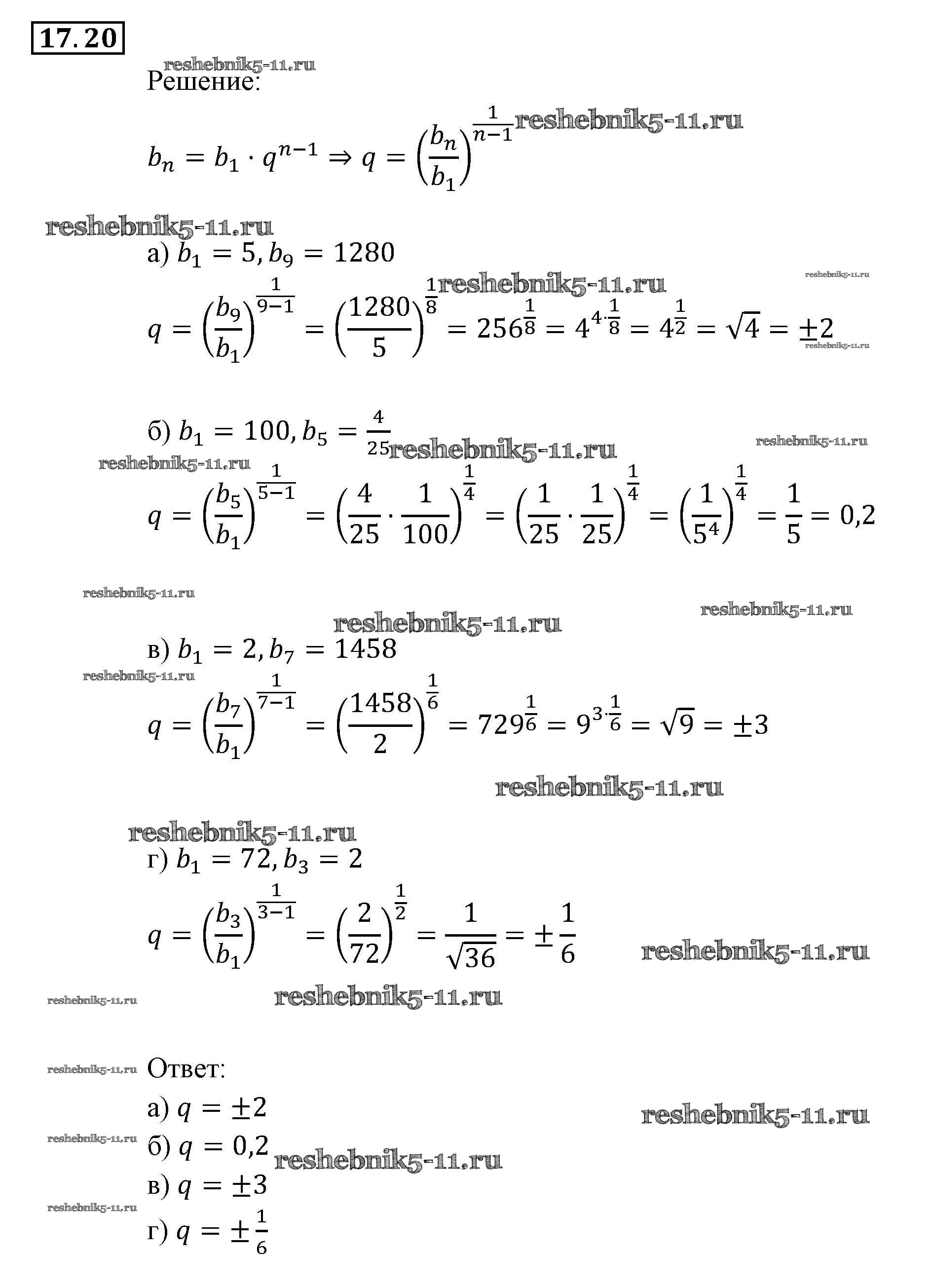 Готовая домашняя работа с ответами по Алгебре за 9 класс Мордкович, Александрова, Мишустина, Тульчинская, Семёнов Задачник Часть 2 Мнемозина 2010 ФГОС - § 17. Геометрическая прогрессия 20