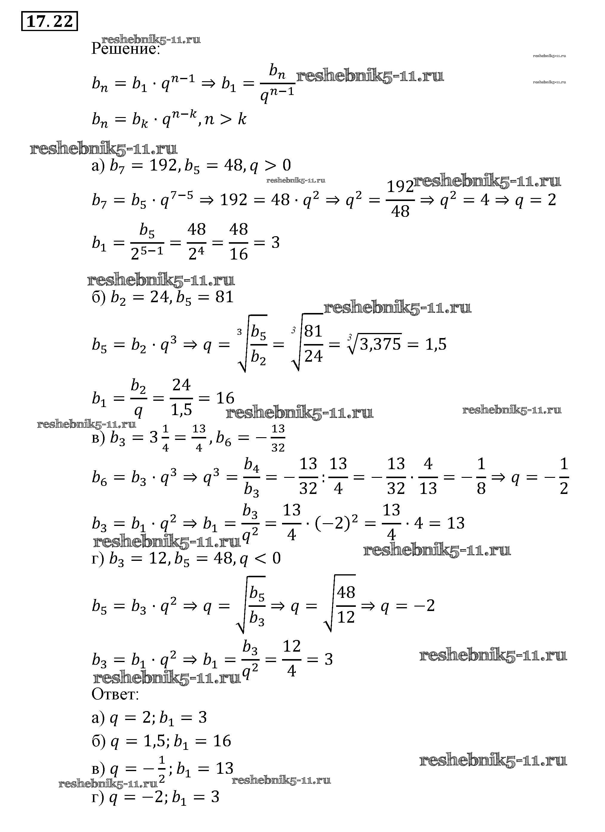 Готовая домашняя работа с ответами по Алгебре за 9 класс Мордкович, Александрова, Мишустина, Тульчинская, Семёнов Задачник Часть 2 Мнемозина 2010 ФГОС - § 17. Геометрическая прогрессия 22