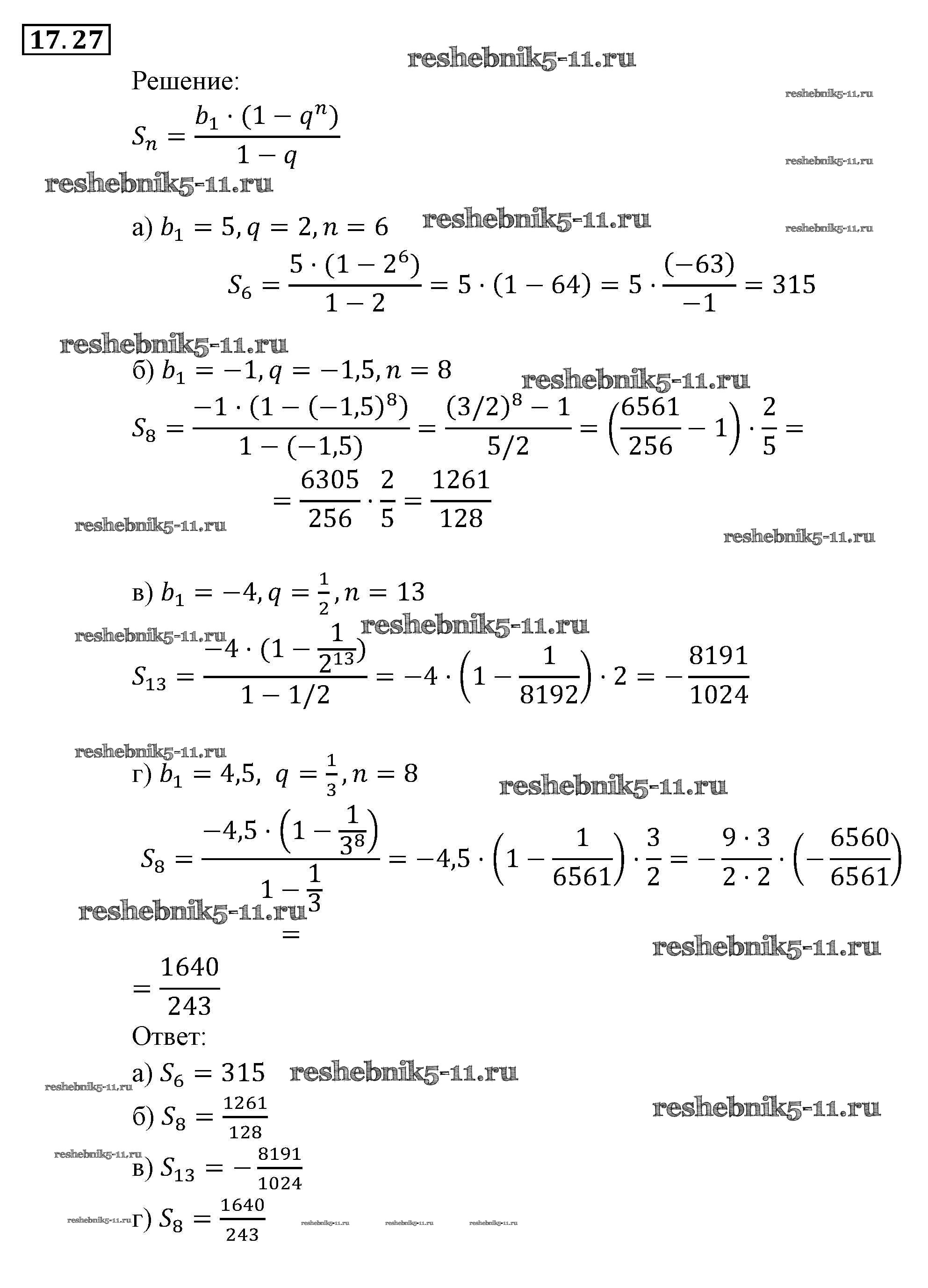 Готовая домашняя работа с ответами по Алгебре за 9 класс Мордкович, Александрова, Мишустина, Тульчинская, Семёнов Задачник Часть 2 Мнемозина 2010 ФГОС - § 17. Геометрическая прогрессия 27