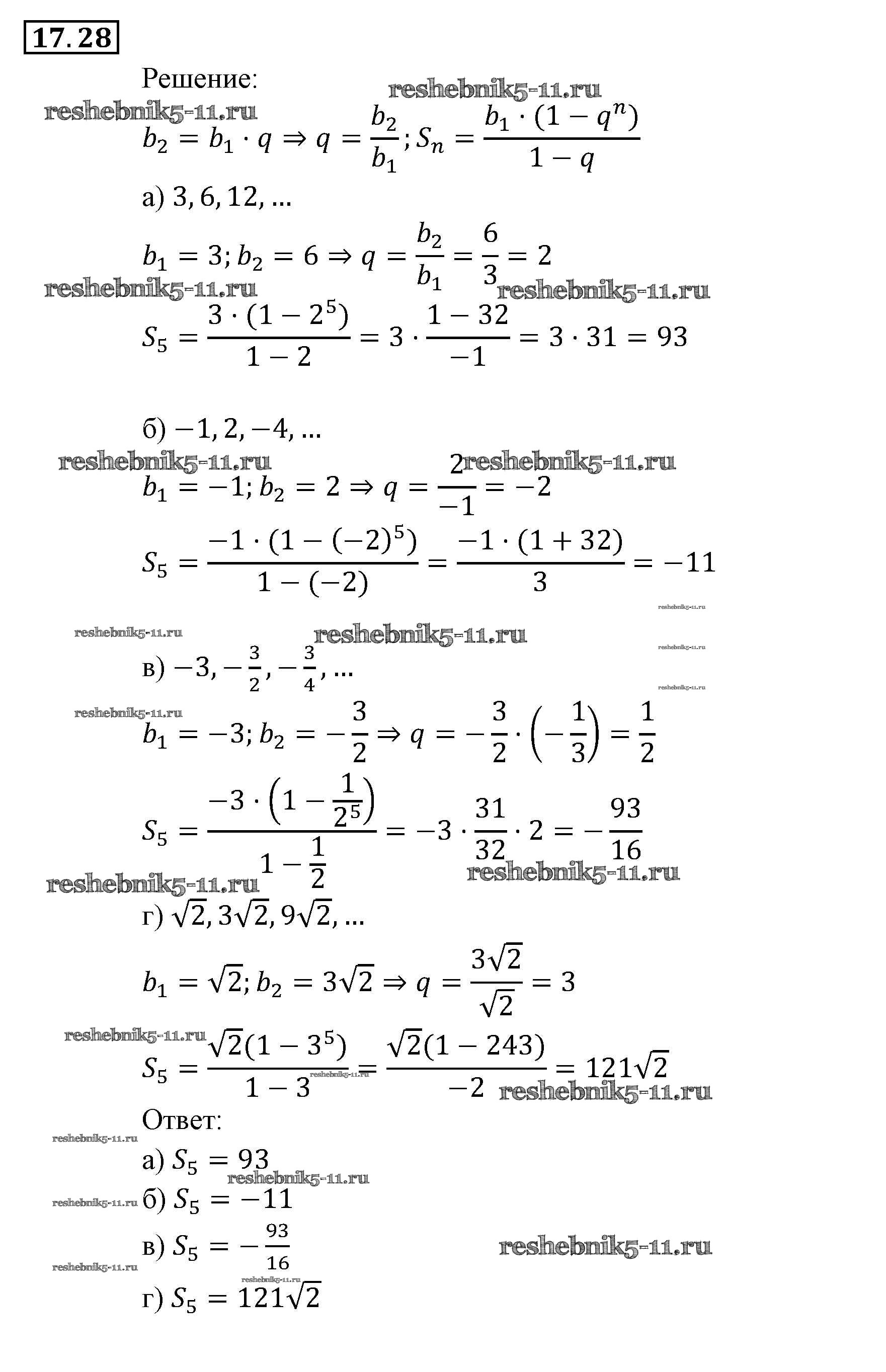 Готовая домашняя работа с ответами по Алгебре за 9 класс Мордкович, Александрова, Мишустина, Тульчинская, Семёнов Задачник Часть 2 Мнемозина 2010 ФГОС - § 17. Геометрическая прогрессия 28