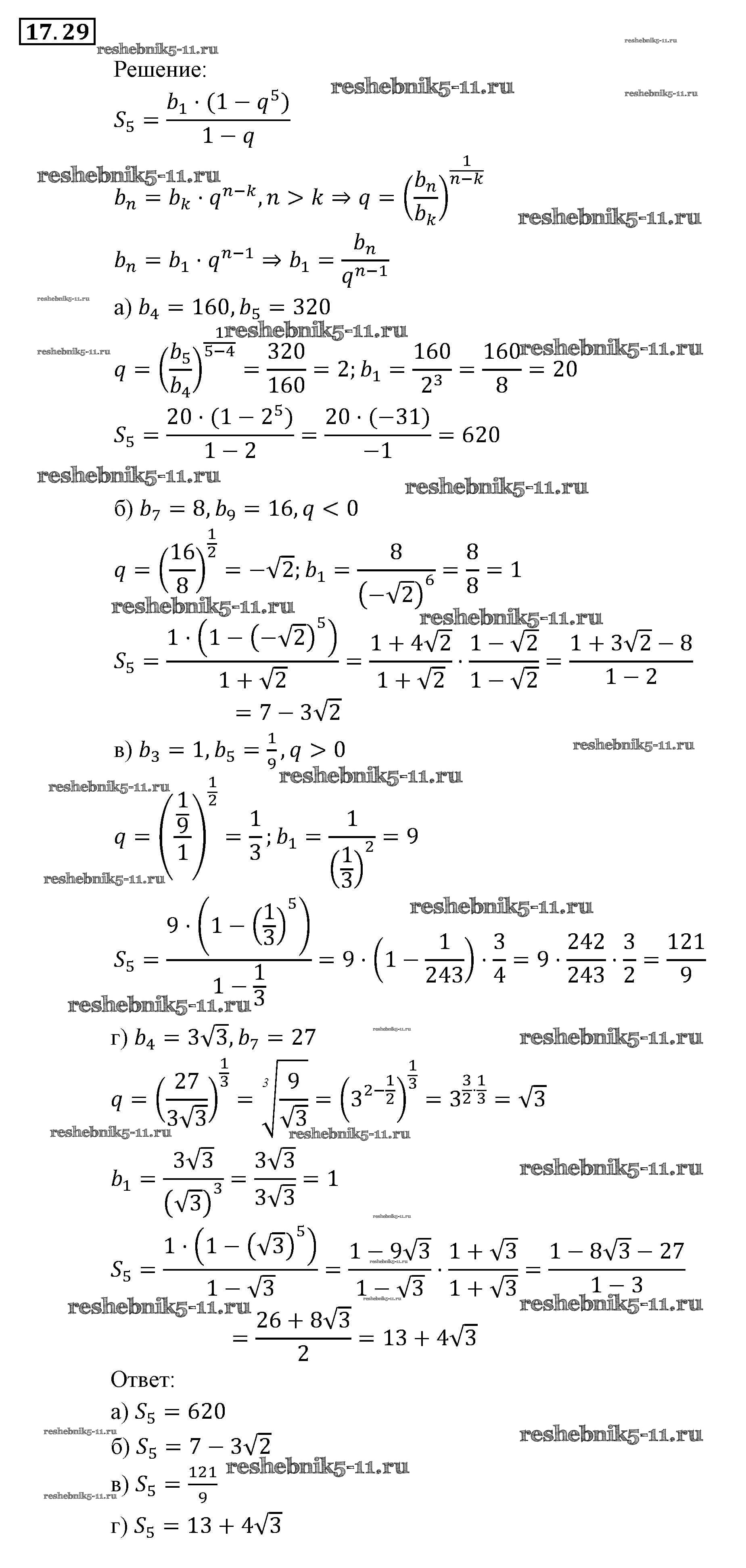 Готовая домашняя работа с ответами по Алгебре за 9 класс Мордкович, Александрова, Мишустина, Тульчинская, Семёнов Задачник Часть 2 Мнемозина 2010 ФГОС - § 17. Геометрическая прогрессия 29