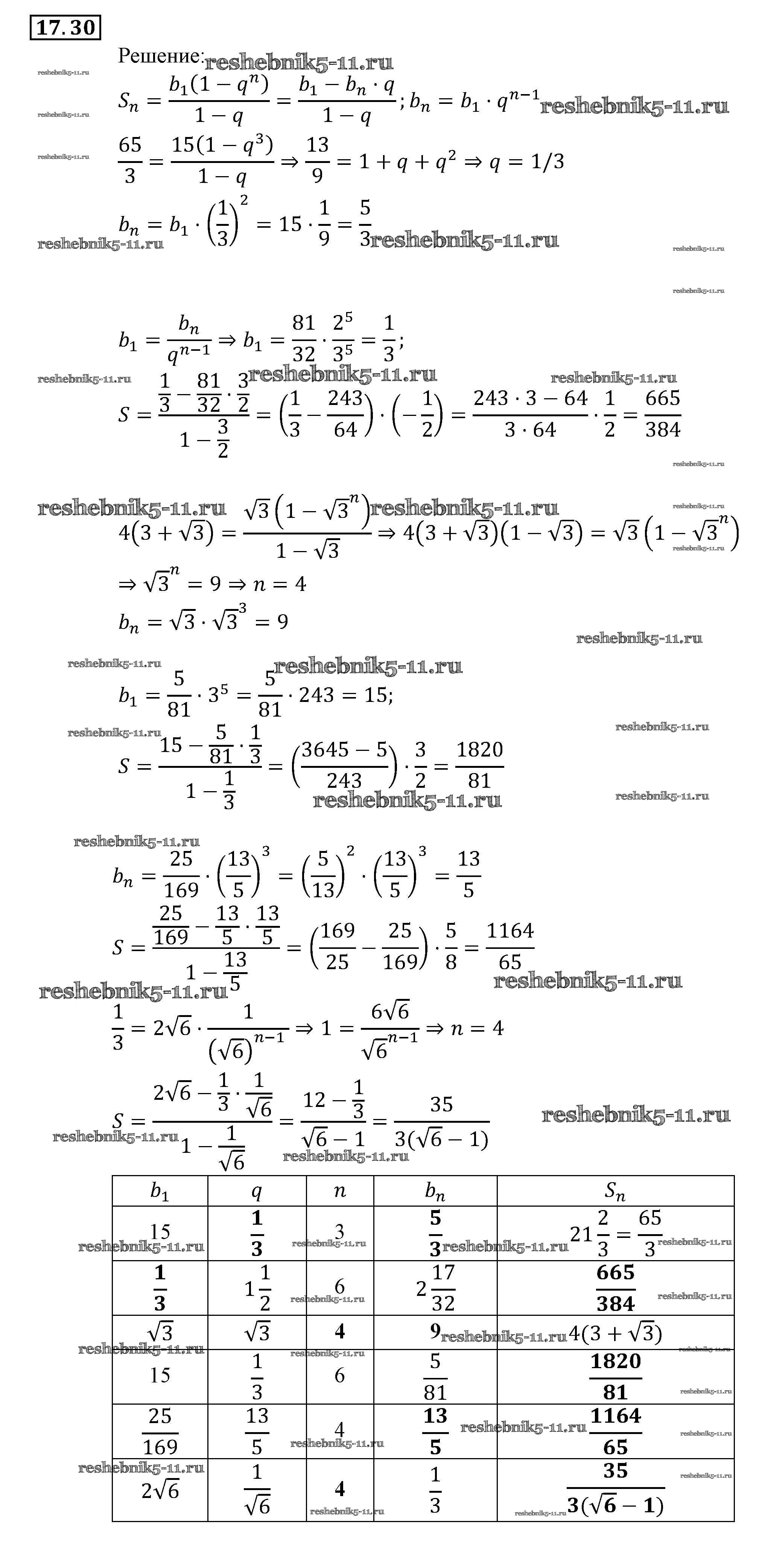 Готовая домашняя работа с ответами по Алгебре за 9 класс Мордкович, Александрова, Мишустина, Тульчинская, Семёнов Задачник Часть 2 Мнемозина 2010 ФГОС - § 17. Геометрическая прогрессия 30