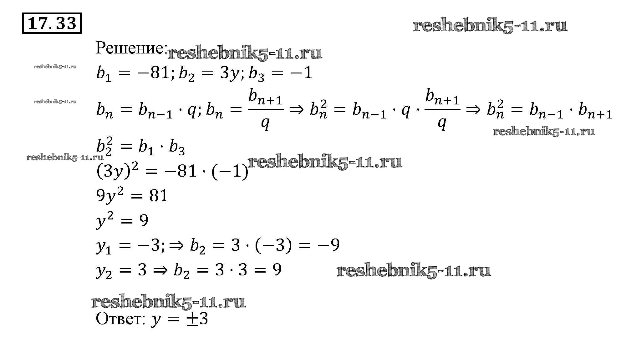 Готовая домашняя работа с ответами по Алгебре за 9 класс Мордкович, Александрова, Мишустина, Тульчинская, Семёнов Задачник Часть 2 Мнемозина 2010 ФГОС - § 17. Геометрическая прогрессия 33