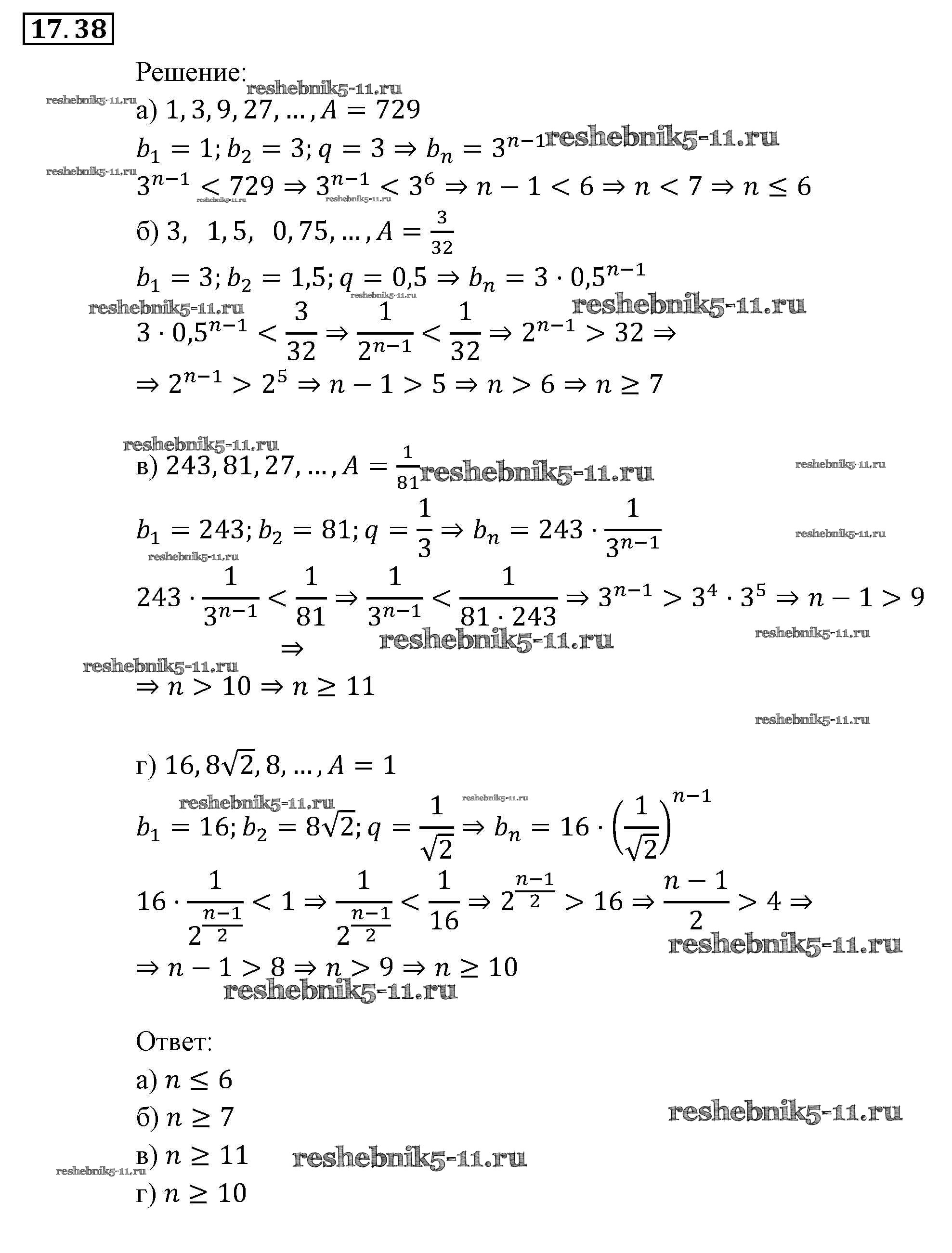 Готовая домашняя работа с ответами по Алгебре за 9 класс Мордкович, Александрова, Мишустина, Тульчинская, Семёнов Задачник Часть 2 Мнемозина 2010 ФГОС - § 17. Геометрическая прогрессия 38