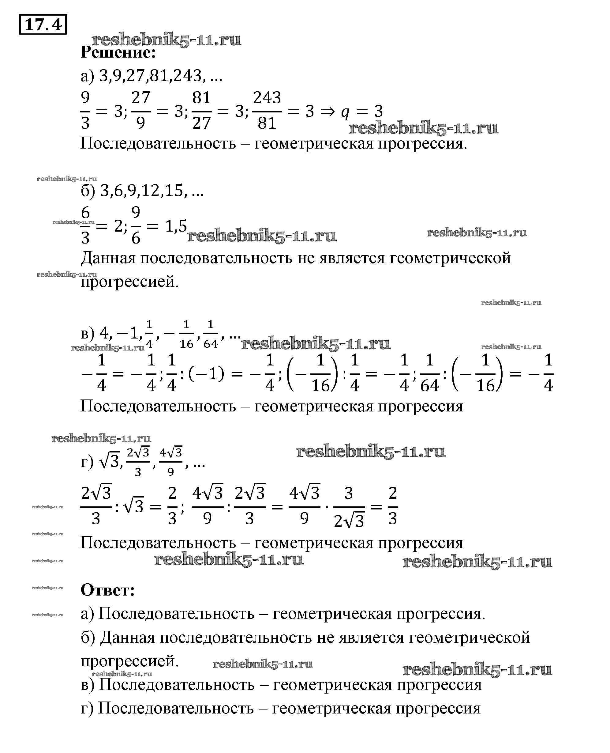 Готовая домашняя работа с ответами по Алгебре за 9 класс Мордкович, Александрова, Мишустина, Тульчинская, Семёнов Задачник Часть 2 Мнемозина 2010 ФГОС - § 17. Геометрическая прогрессия 4