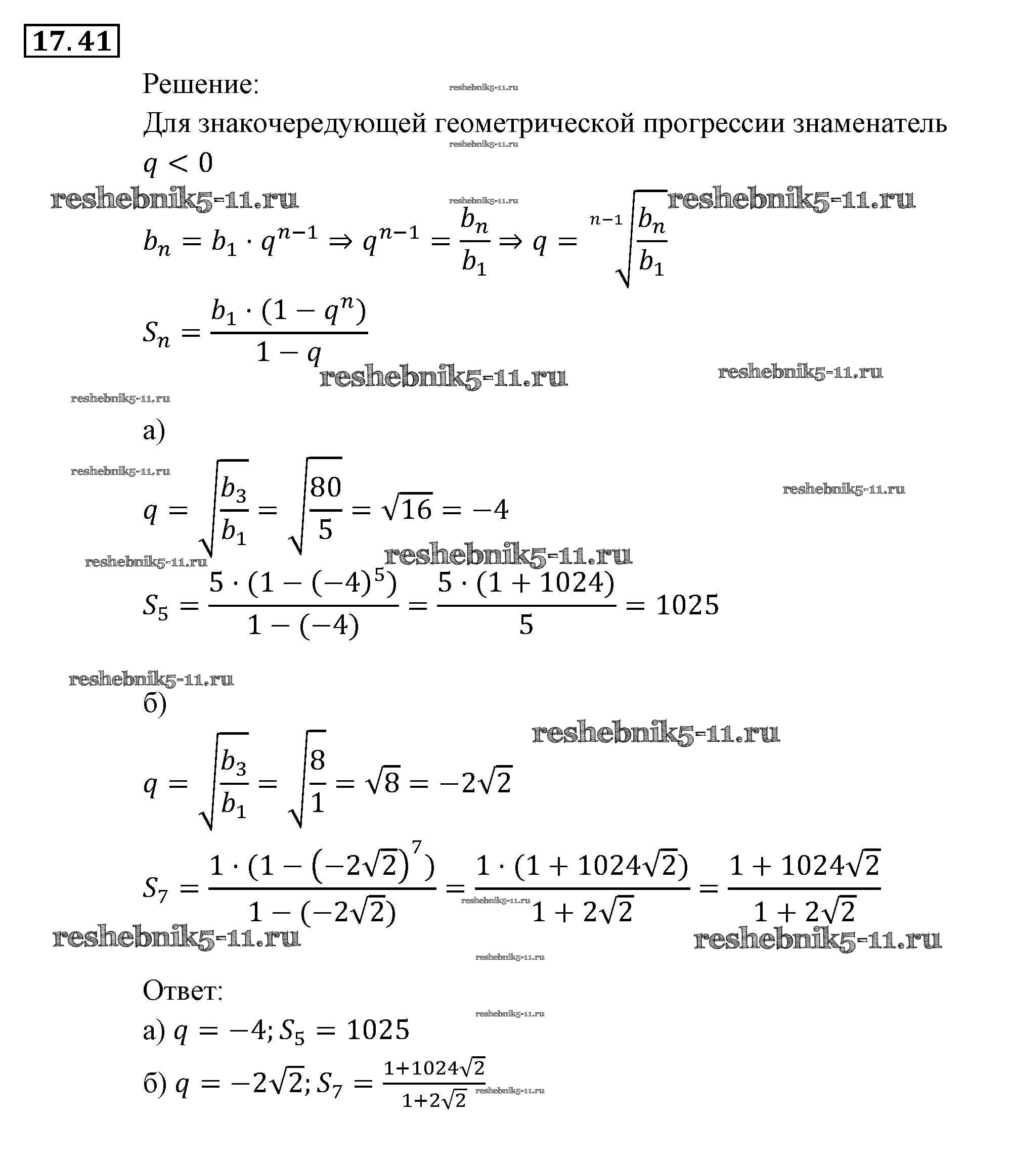 Готовая домашняя работа с ответами по Алгебре за 9 класс Мордкович, Александрова, Мишустина, Тульчинская, Семёнов Задачник Часть 2 Мнемозина 2010 ФГОС - § 17. Геометрическая прогрессия 41