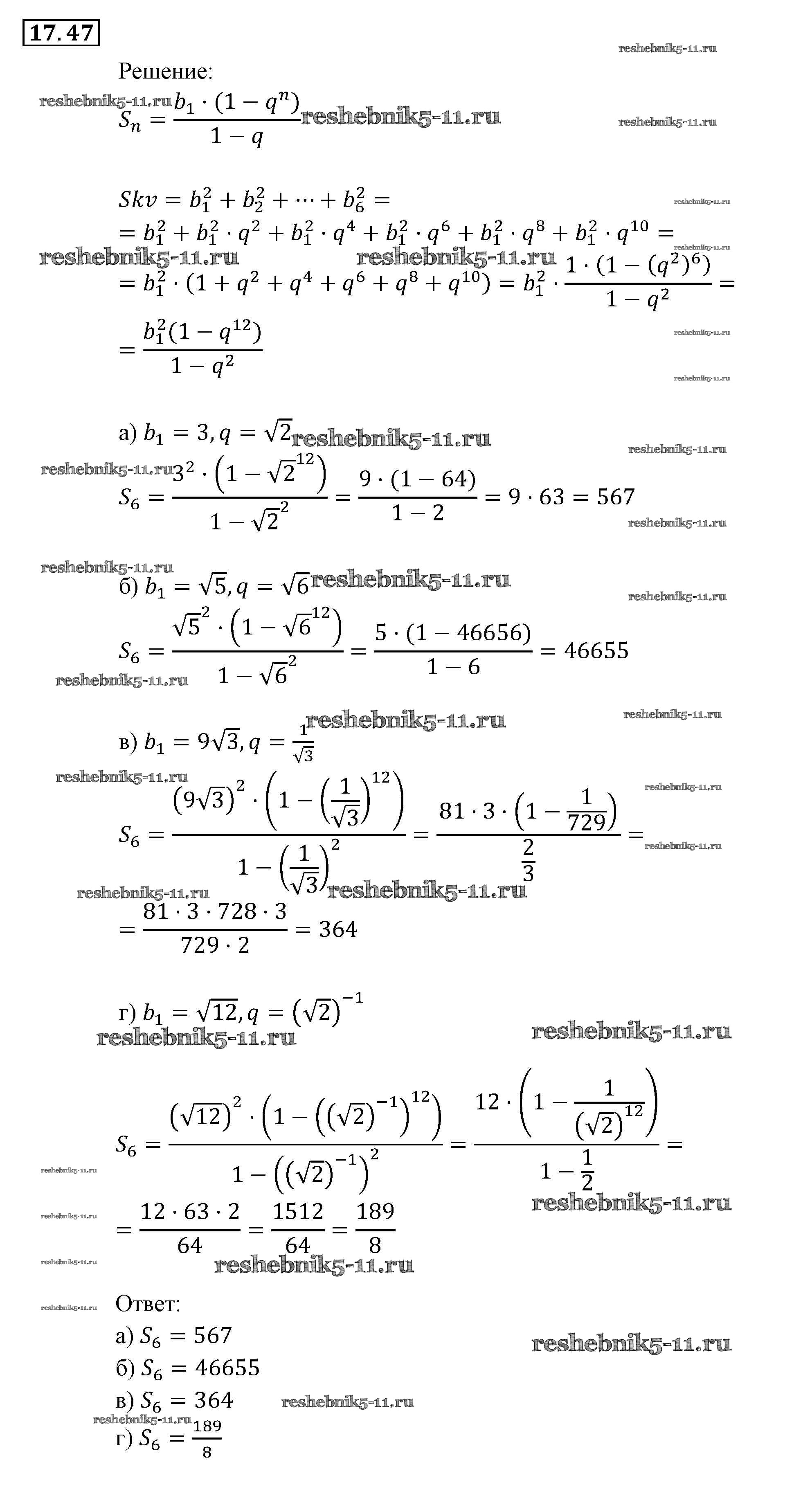 Готовая домашняя работа с ответами по Алгебре за 9 класс Мордкович, Александрова, Мишустина, Тульчинская, Семёнов Задачник Часть 2 Мнемозина 2010 ФГОС - § 17. Геометрическая прогрессия 47