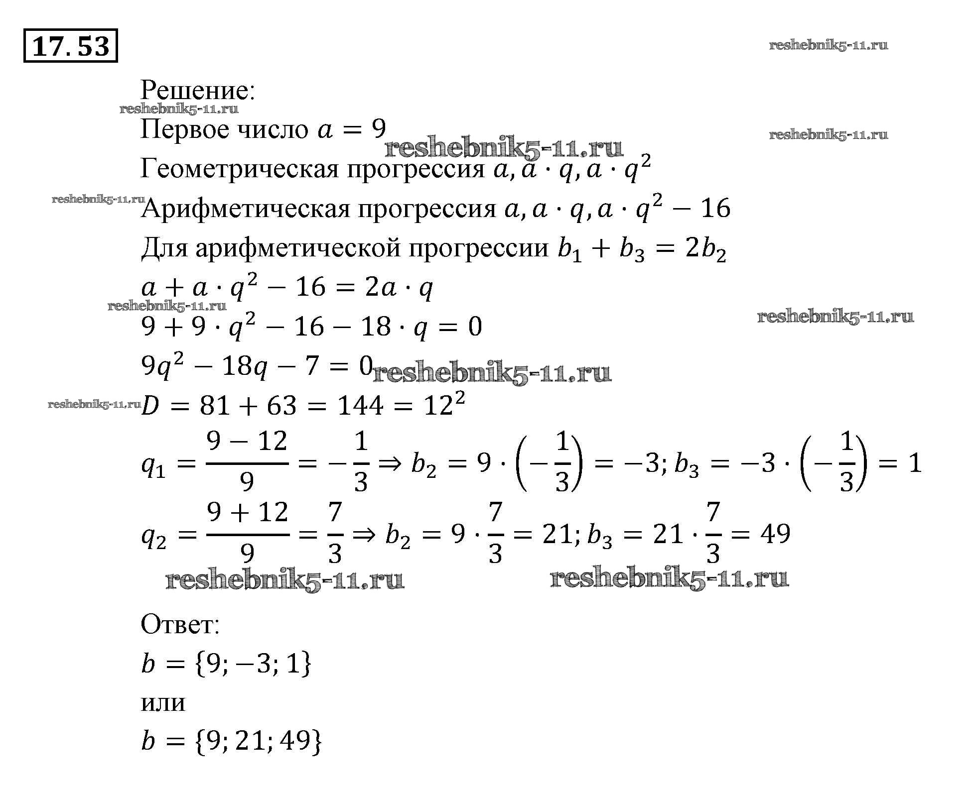 Готовая домашняя работа с ответами по Алгебре за 9 класс Мордкович, Александрова, Мишустина, Тульчинская, Семёнов Задачник Часть 2 Мнемозина 2010 ФГОС - § 17. Геометрическая прогрессия 53