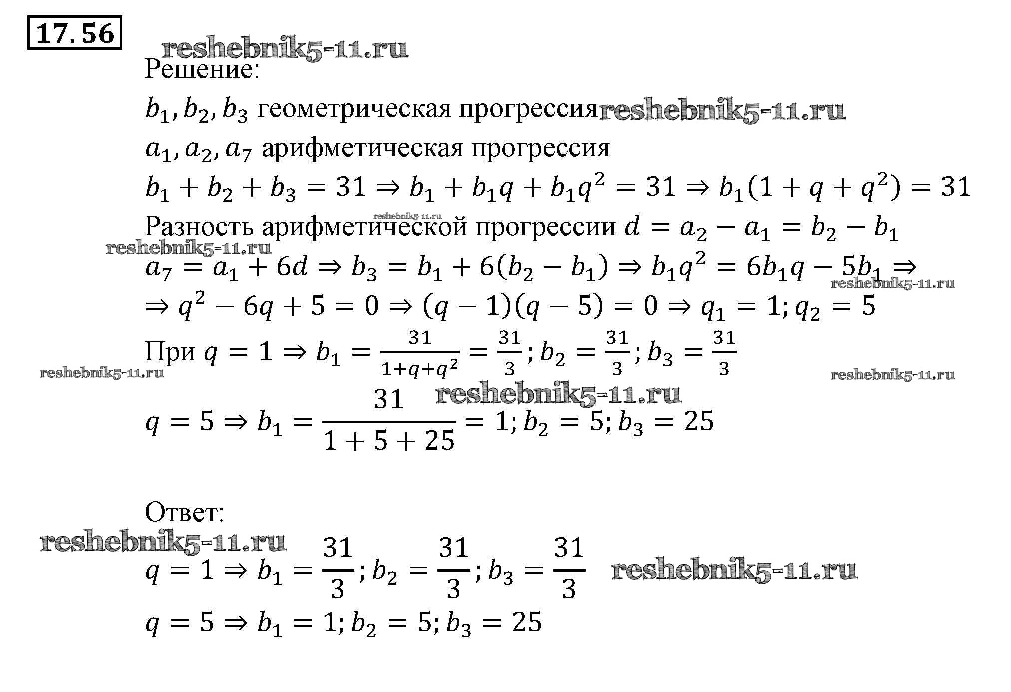 Готовая домашняя работа с ответами по Алгебре за 9 класс Мордкович, Александрова, Мишустина, Тульчинская, Семёнов Задачник Часть 2 Мнемозина 2010 ФГОС - § 17. Геометрическая прогрессия 56