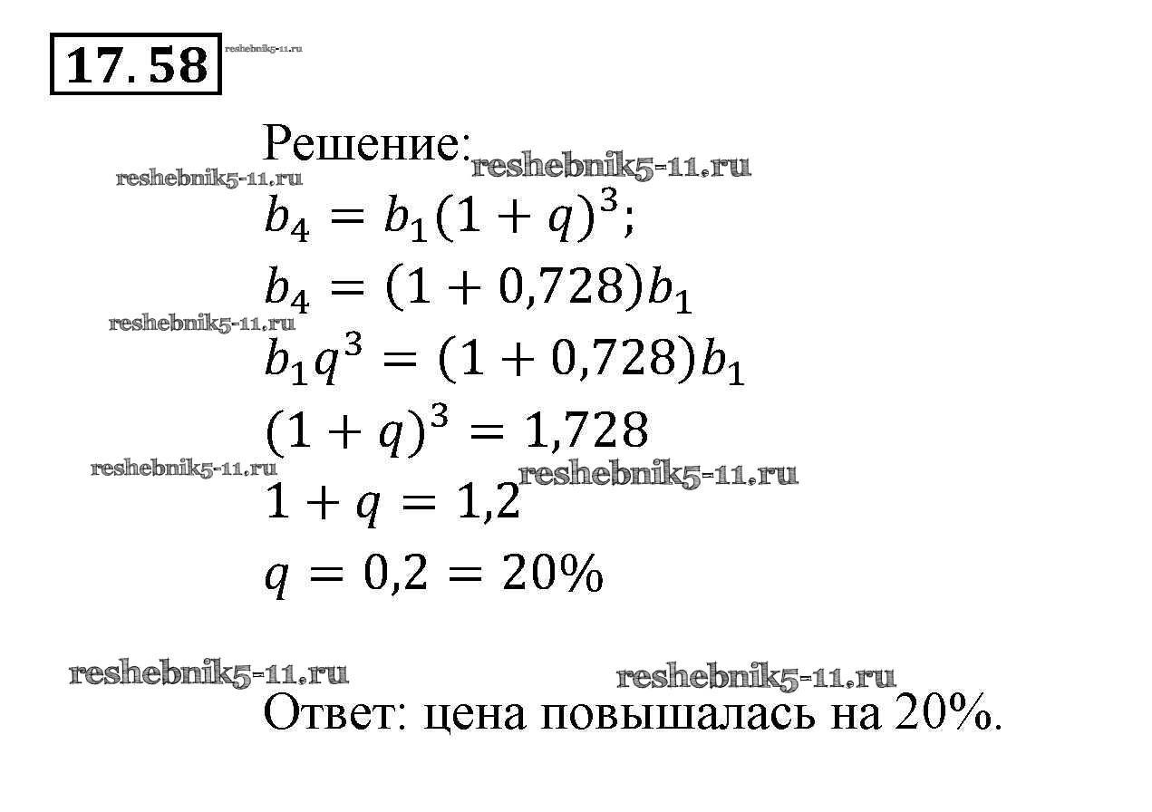 Готовая домашняя работа с ответами по Алгебре за 9 класс Мордкович, Александрова, Мишустина, Тульчинская, Семёнов Задачник Часть 2 Мнемозина 2010 ФГОС - § 17. Геометрическая прогрессия 58