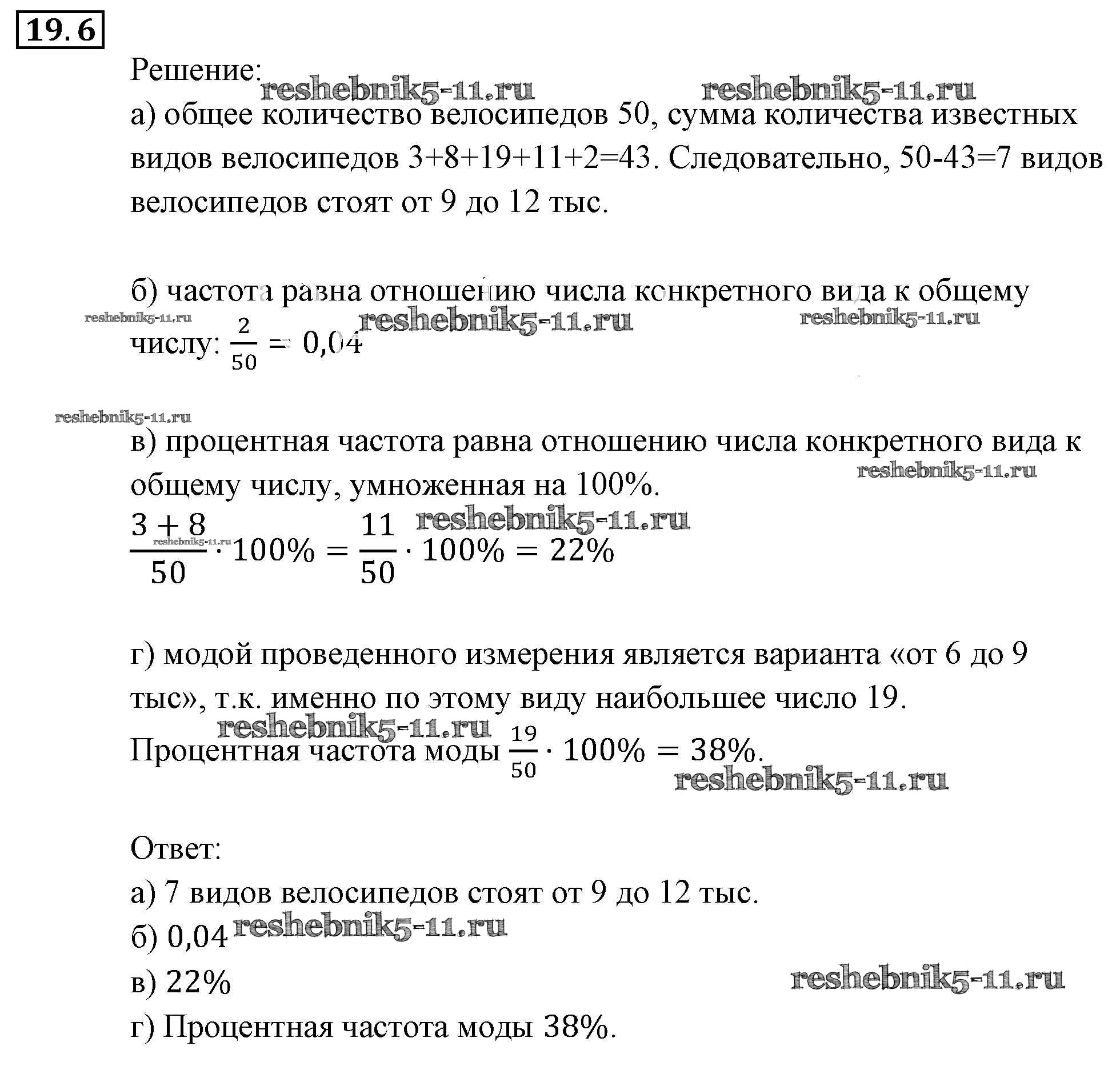 Готовая домашняя работа с ответами по Алгебре за 9 класс Мордкович, Александрова, Мишустина, Тульчинская, Семёнов Задачник Часть 2 Мнемозина 2010 ФГОС - § 19. Статистика — дизайн информации 6