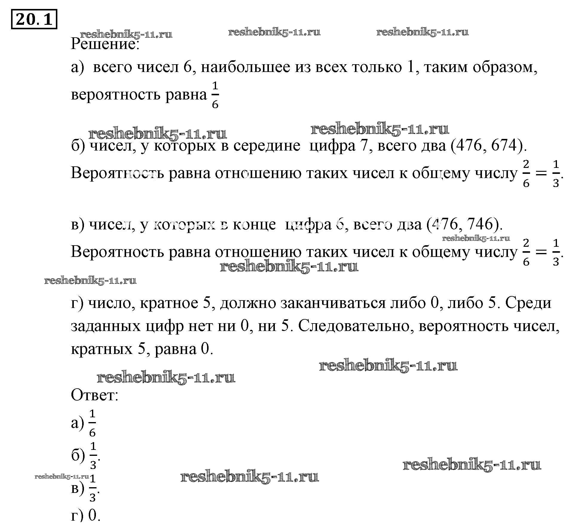 Готовая домашняя работа с ответами по Алгебре за 9 класс Мордкович, Александрова, Мишустина, Тульчинская, Семёнов Задачник Часть 2 Мнемозина 2010 ФГОС - § 20. Простейшие вероятностные задачи 1