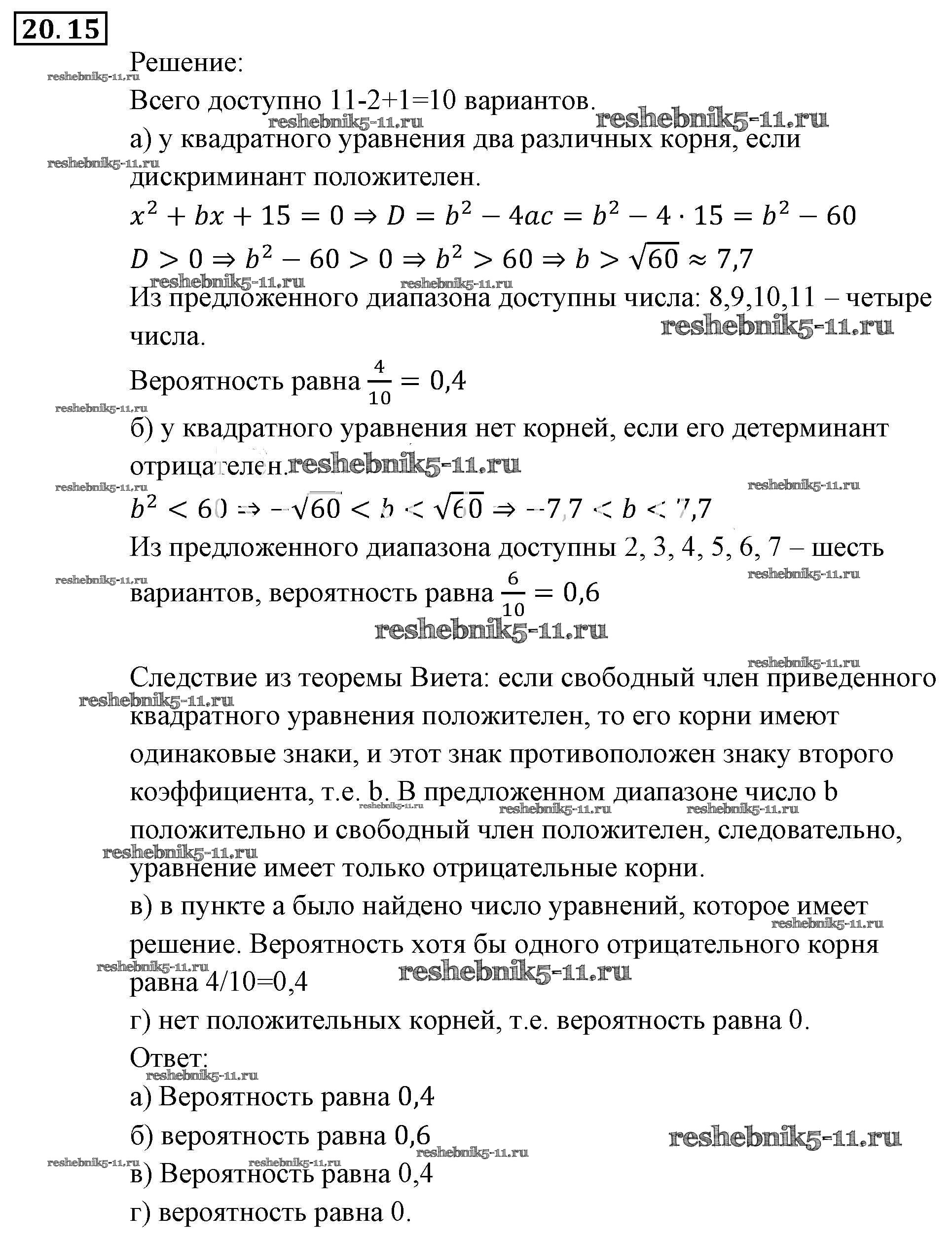 Готовая домашняя работа с ответами по Алгебре за 9 класс Мордкович, Александрова, Мишустина, Тульчинская, Семёнов Задачник Часть 2 Мнемозина 2010 ФГОС - § 20. Простейшие вероятностные задачи 15