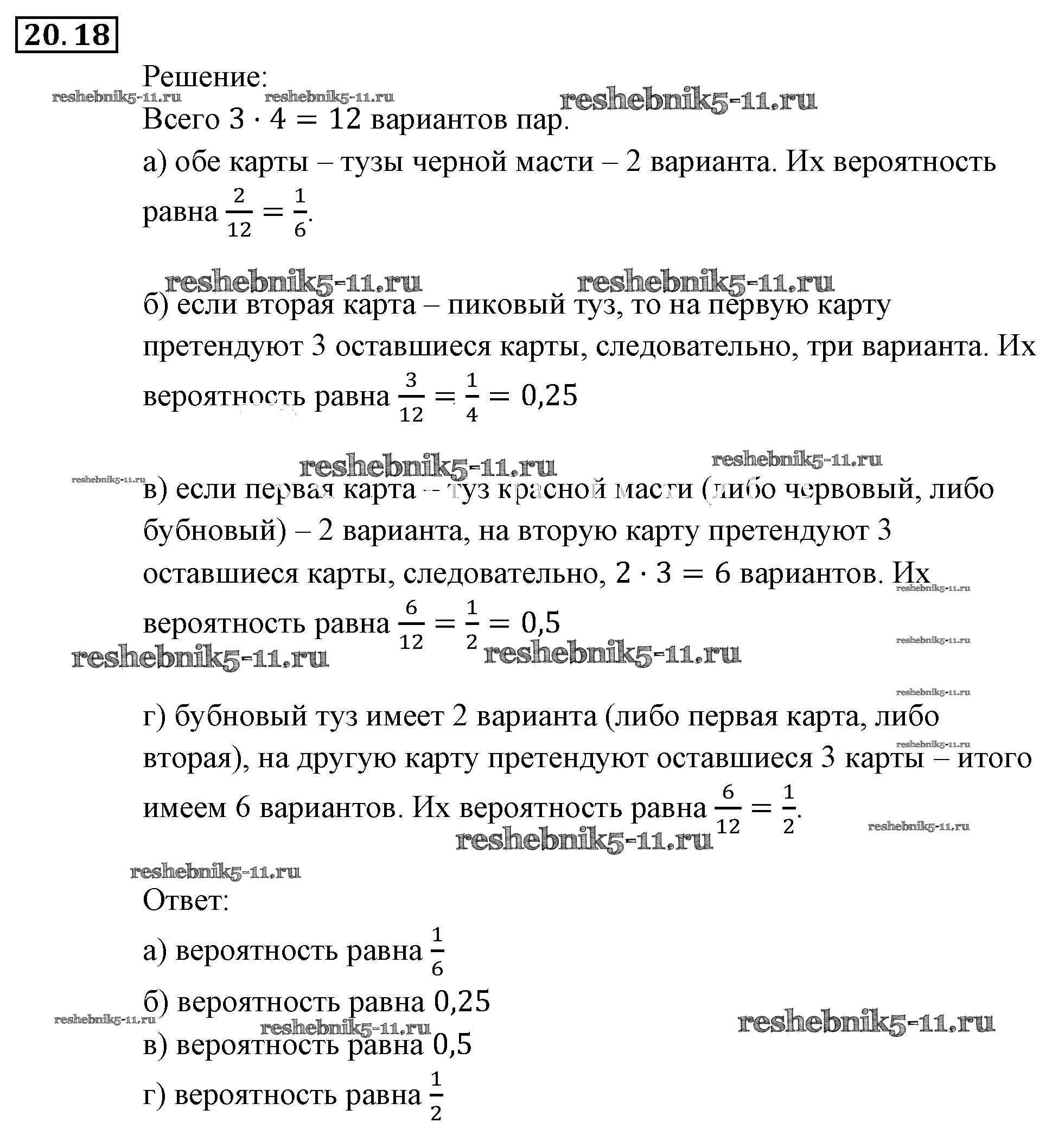 Готовая домашняя работа с ответами по Алгебре за 9 класс Мордкович, Александрова, Мишустина, Тульчинская, Семёнов Задачник Часть 2 Мнемозина 2010 ФГОС - § 20. Простейшие вероятностные задачи 18