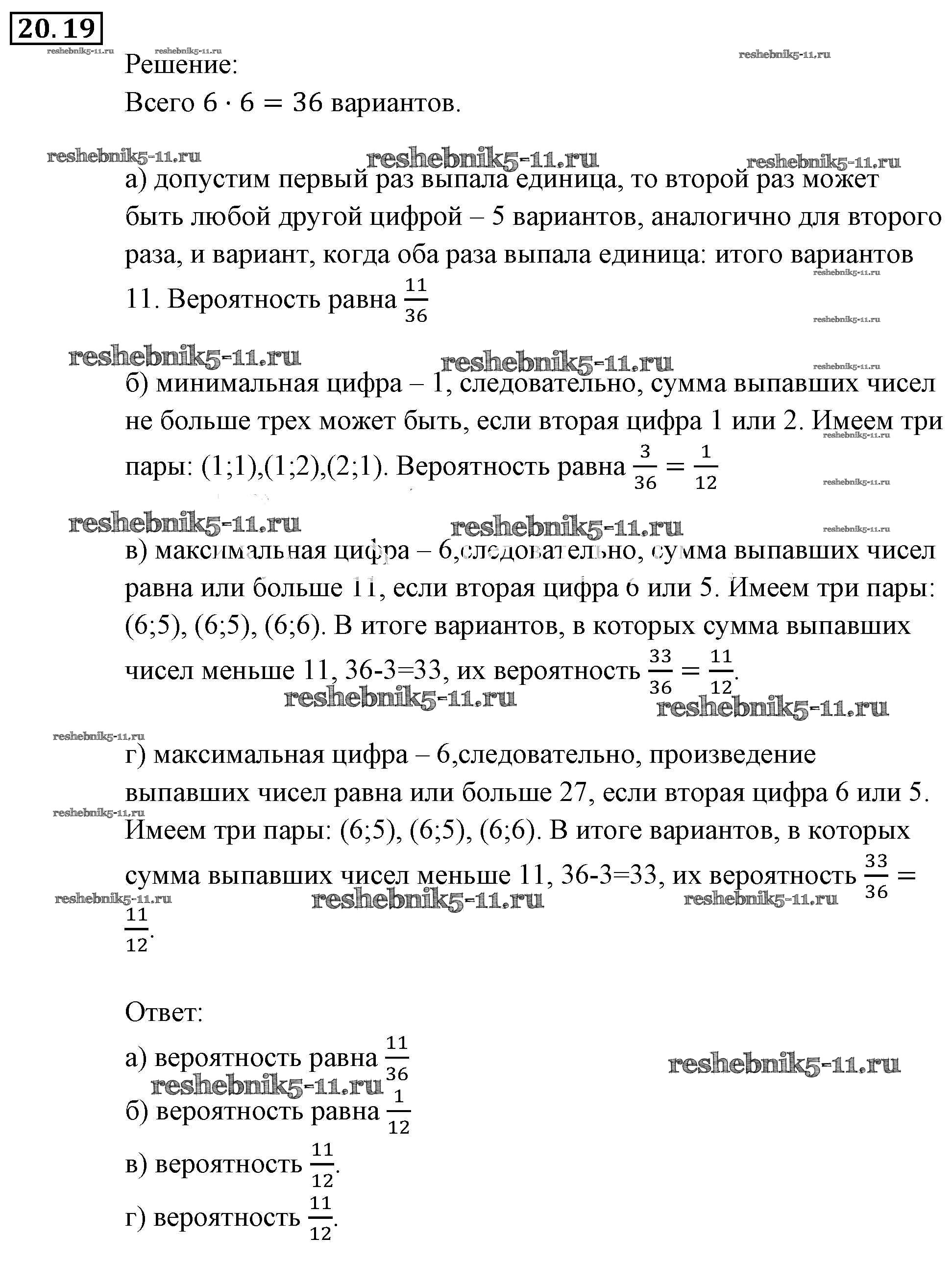 Готовая домашняя работа с ответами по Алгебре за 9 класс Мордкович, Александрова, Мишустина, Тульчинская, Семёнов Задачник Часть 2 Мнемозина 2010 ФГОС - § 20. Простейшие вероятностные задачи 19