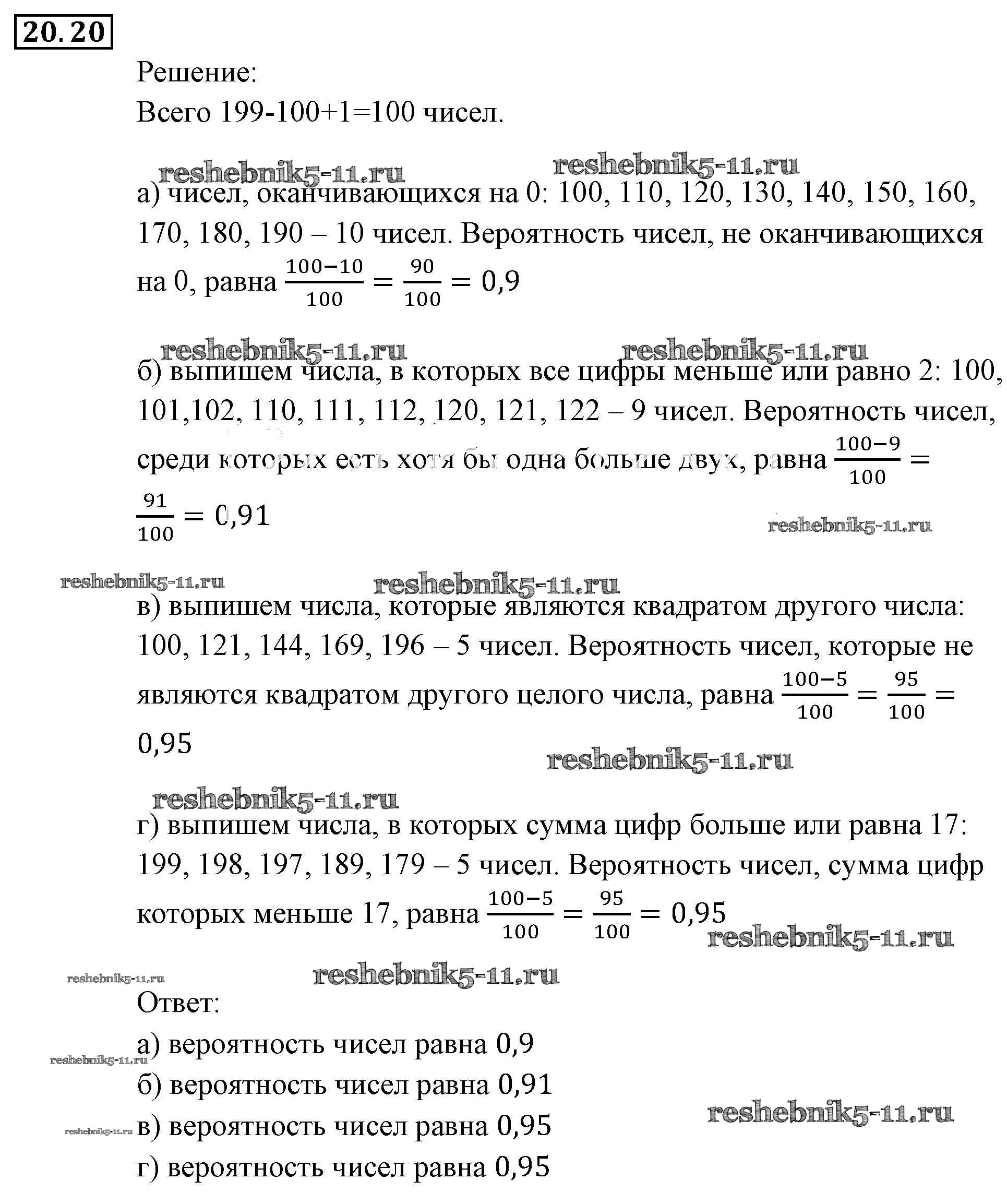 Готовая домашняя работа с ответами по Алгебре за 9 класс Мордкович, Александрова, Мишустина, Тульчинская, Семёнов Задачник Часть 2 Мнемозина 2010 ФГОС - § 20. Простейшие вероятностные задачи 20