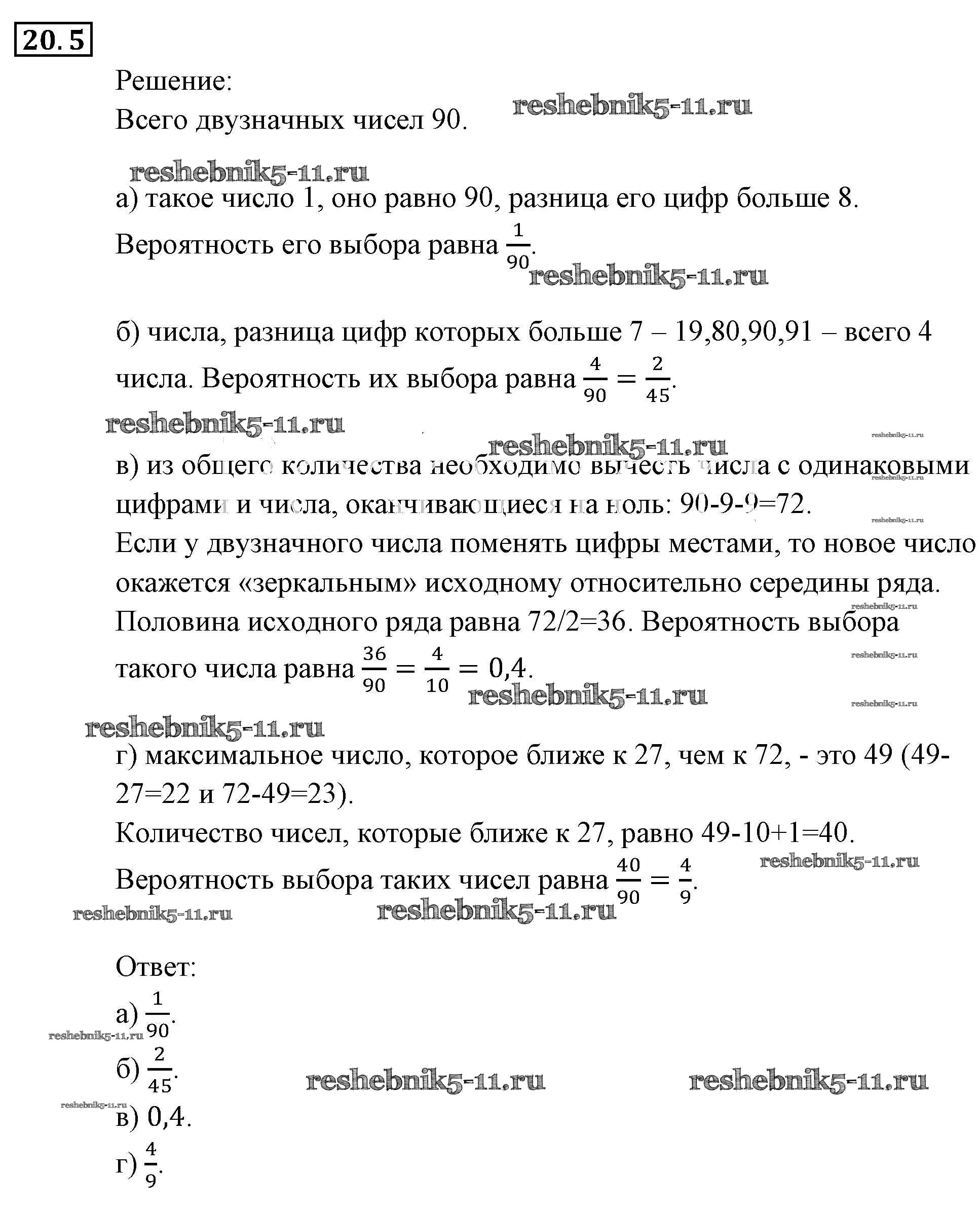 Готовая домашняя работа с ответами по Алгебре за 9 класс Мордкович, Александрова, Мишустина, Тульчинская, Семёнов Задачник Часть 2 Мнемозина 2010 ФГОС - § 20. Простейшие вероятностные задачи 5