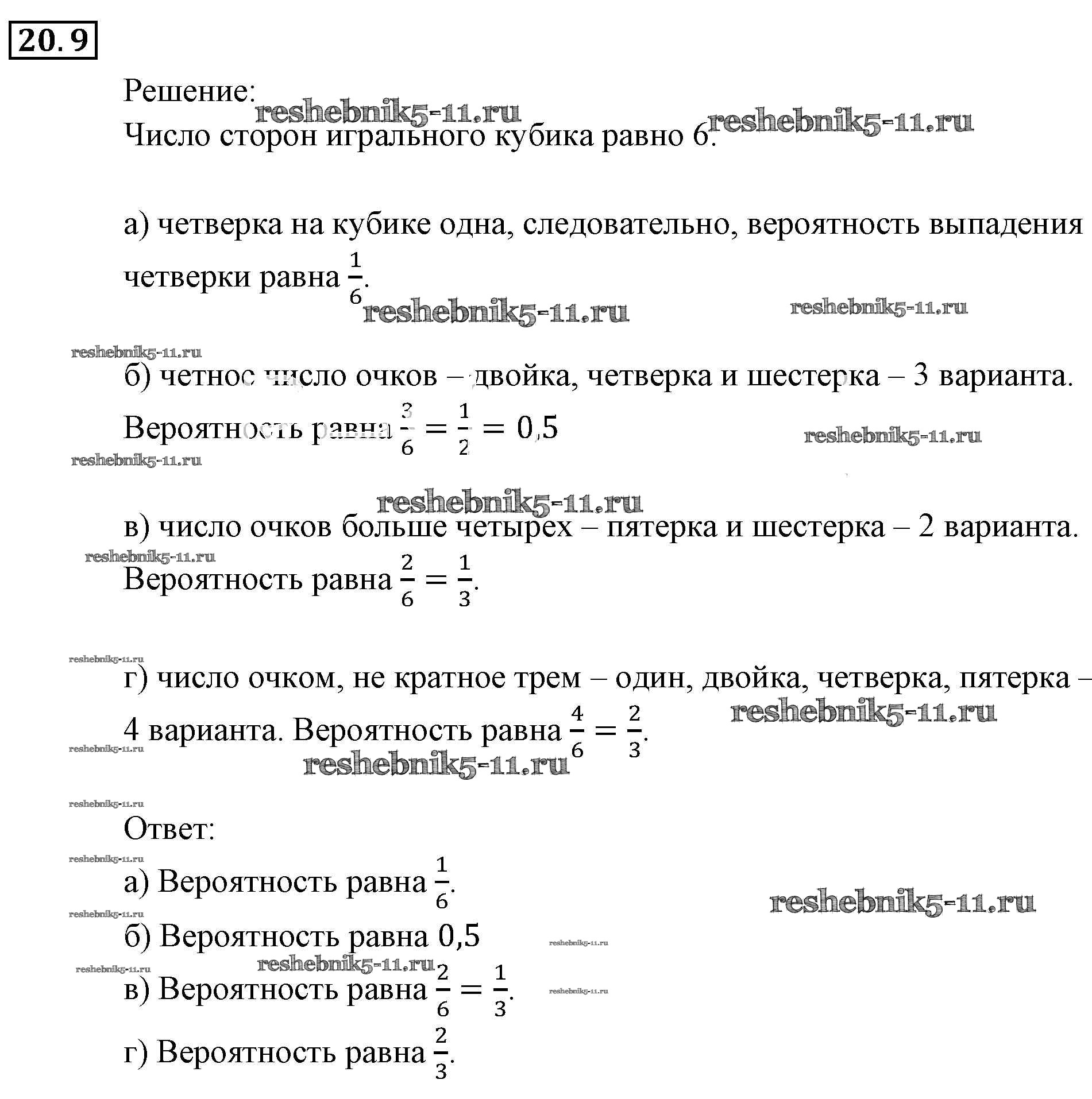 Готовая домашняя работа с ответами по Алгебре за 9 класс Мордкович, Александрова, Мишустина, Тульчинская, Семёнов Задачник Часть 2 Мнемозина 2010 ФГОС - § 20. Простейшие вероятностные задачи 9