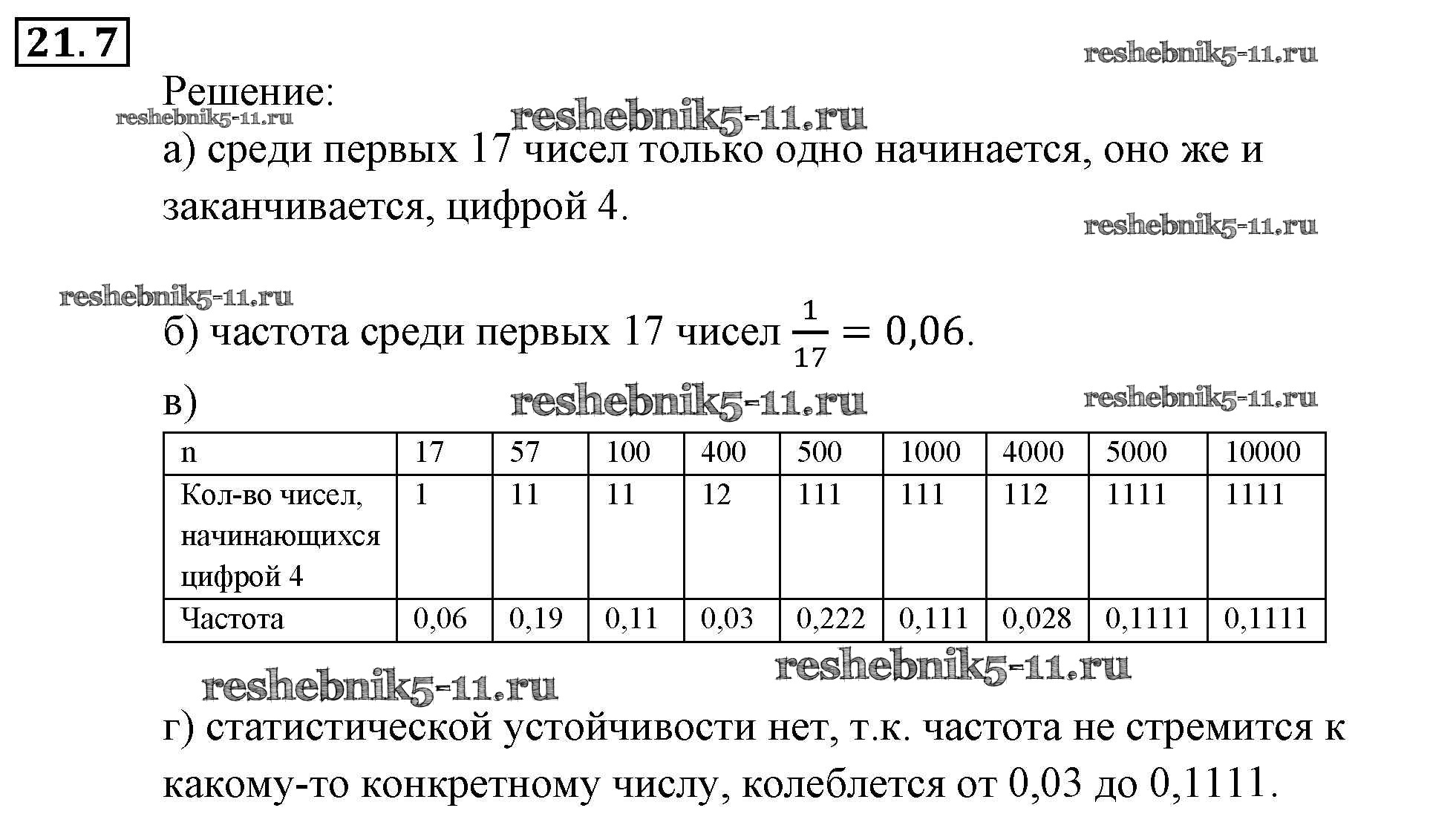 Готовая домашняя работа с ответами по Алгебре за 9 класс Мордкович, Александрова, Мишустина, Тульчинская, Семёнов Задачник Часть 2 Мнемозина 2010 ФГОС - § 21. Экспериментальные данные и вероятности событий 7