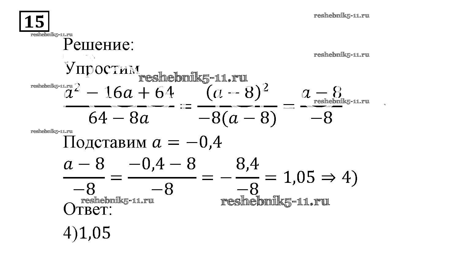 Готовая домашняя работа с ответами по Алгебре за 9 класс Мордкович, Александрова, Мишустина, Тульчинская, Семёнов Задачник Часть 2 Мнемозина 2010 ФГОС - Алгебраические выражения 15
