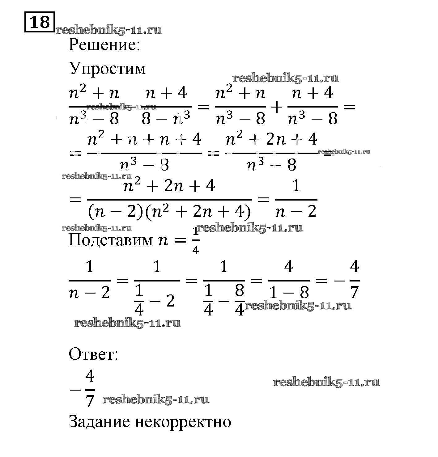 Готовая домашняя работа с ответами по Алгебре за 9 класс Мордкович, Александрова, Мишустина, Тульчинская, Семёнов Задачник Часть 2 Мнемозина 2010 ФГОС - Алгебраические выражения 18
