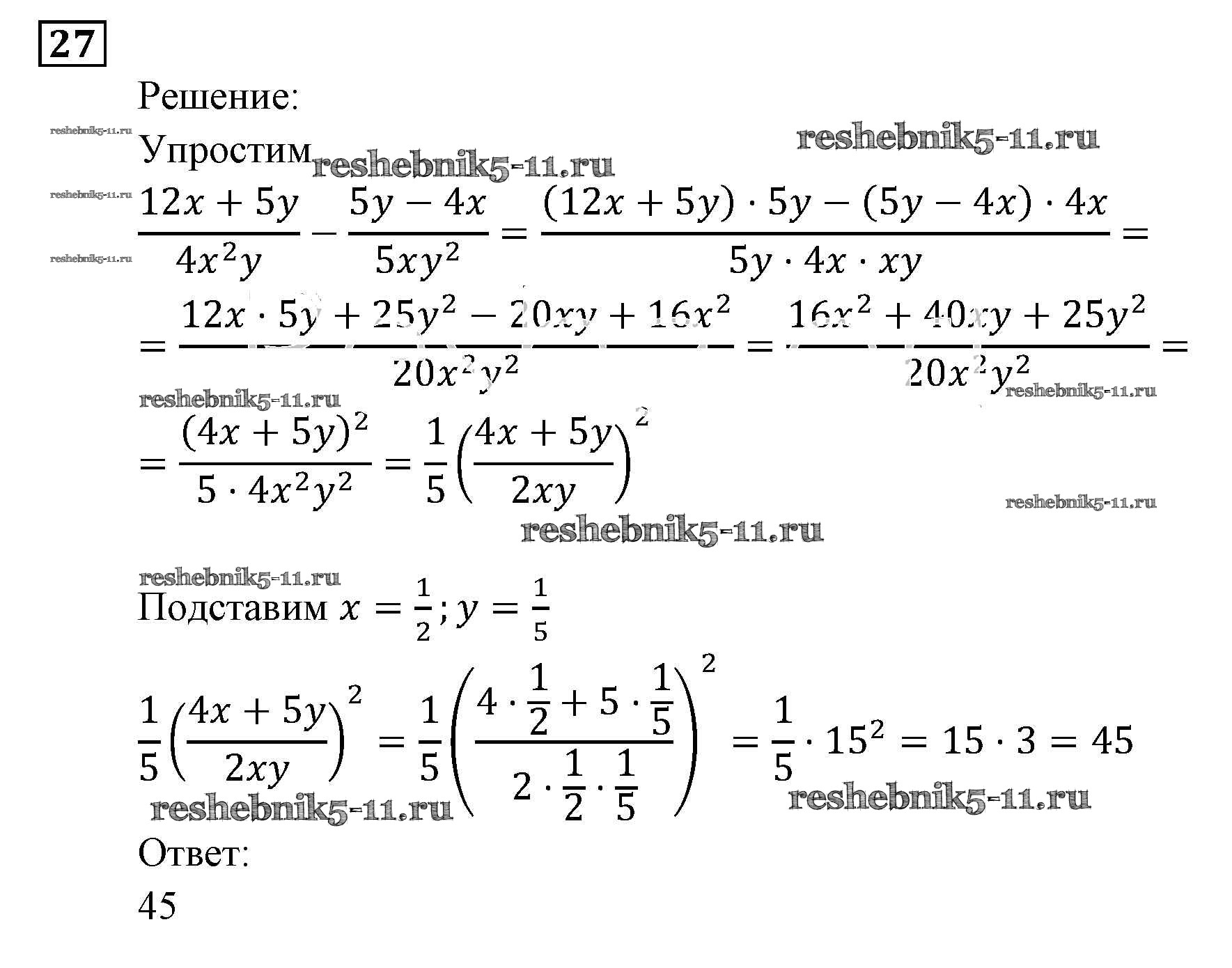 Готовая домашняя работа с ответами по Алгебре за 9 класс Мордкович, Александрова, Мишустина, Тульчинская, Семёнов Задачник Часть 2 Мнемозина 2010 ФГОС - Алгебраические выражения 27
