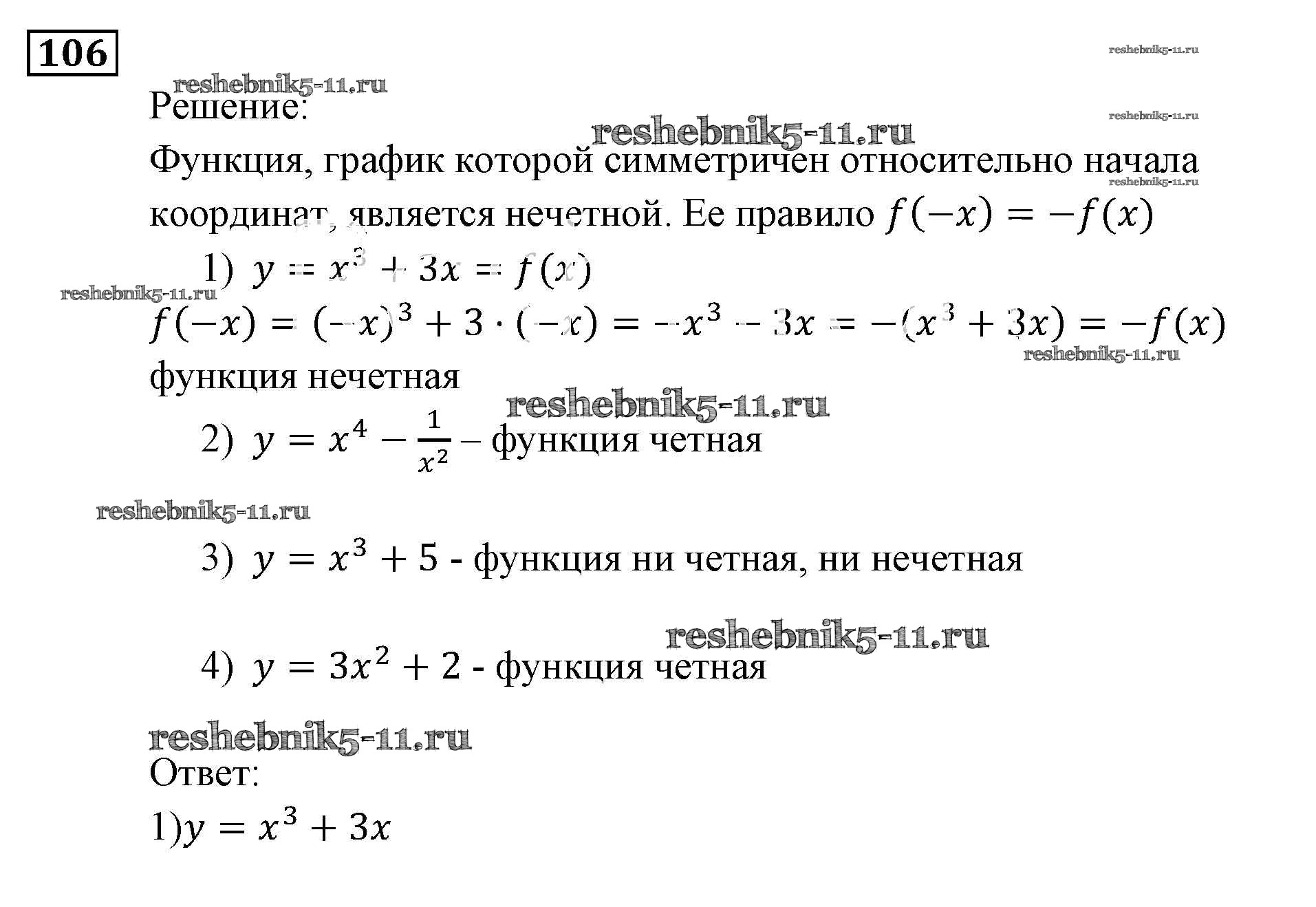 Готовая домашняя работа с ответами по Алгебре за 9 класс Мордкович, Александрова, Мишустина, Тульчинская, Семёнов Задачник Часть 2 Мнемозина 2010 ФГОС - Функции и графики 106