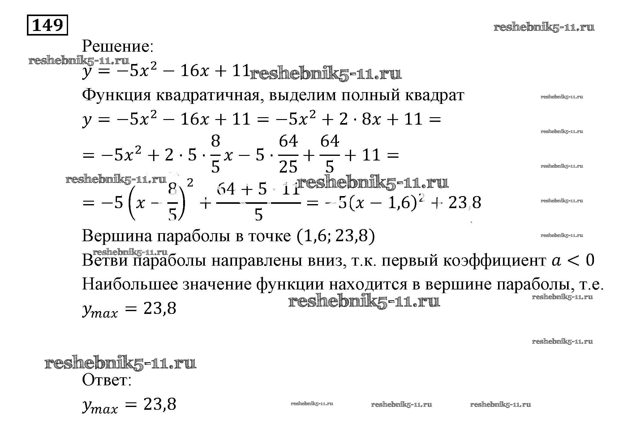 Готовая домашняя работа с ответами по Алгебре за 9 класс Мордкович, Александрова, Мишустина, Тульчинская, Семёнов Задачник Часть 2 Мнемозина 2010 ФГОС - Функции и графики 149