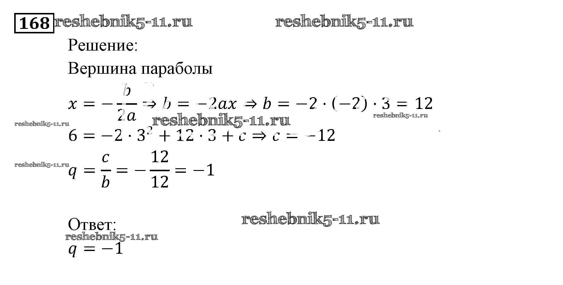 Готовая домашняя работа с ответами по Алгебре за 9 класс Мордкович, Александрова, Мишустина, Тульчинская, Семёнов Задачник Часть 2 Мнемозина 2010 ФГОС - Функции и графики 168