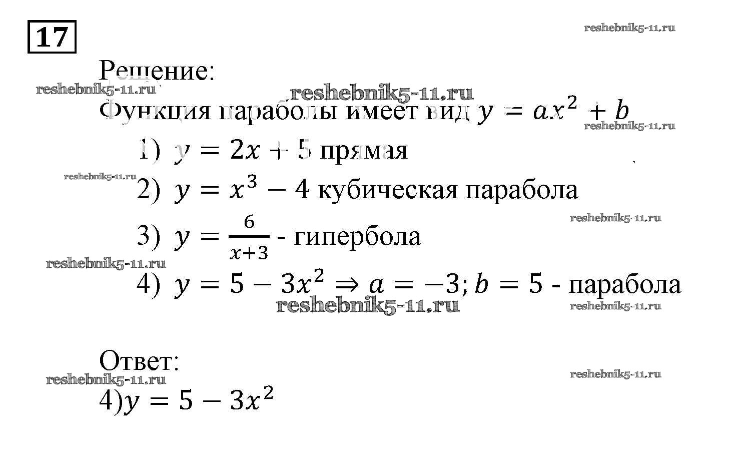 Готовая домашняя работа с ответами по Алгебре за 9 класс Мордкович, Александрова, Мишустина, Тульчинская, Семёнов Задачник Часть 2 Мнемозина 2010 ФГОС - Функции и графики 17
