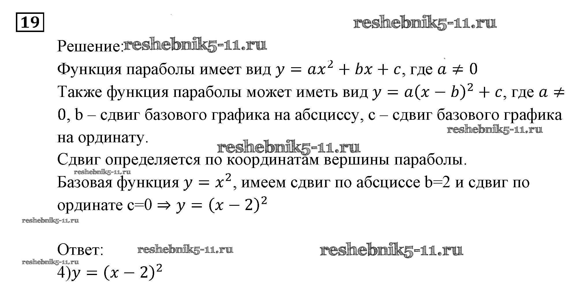 Готовая домашняя работа с ответами по Алгебре за 9 класс Мордкович, Александрова, Мишустина, Тульчинская, Семёнов Задачник Часть 2 Мнемозина 2010 ФГОС - Функции и графики 19