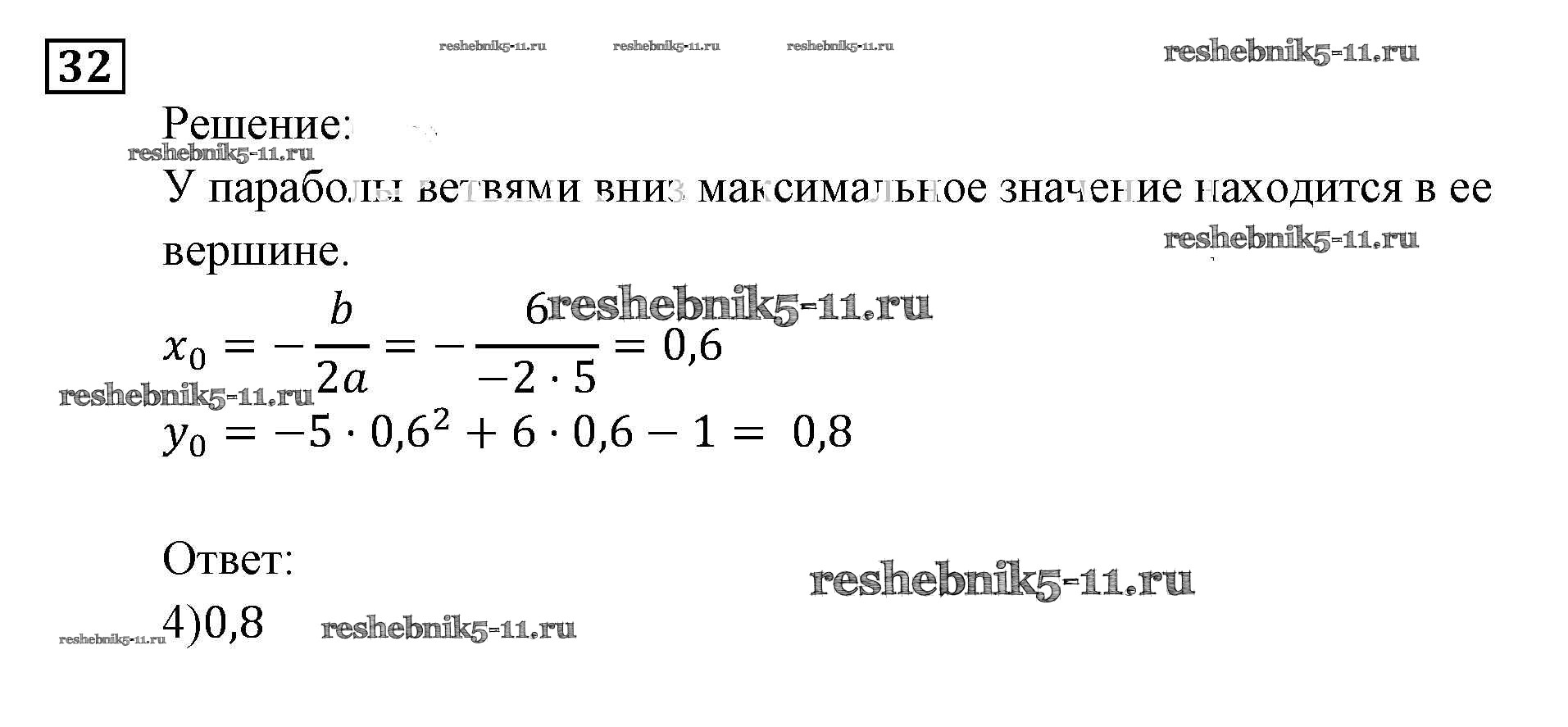 Готовая домашняя работа с ответами по Алгебре за 9 класс Мордкович, Александрова, Мишустина, Тульчинская, Семёнов Задачник Часть 2 Мнемозина 2010 ФГОС - Функции и графики 32